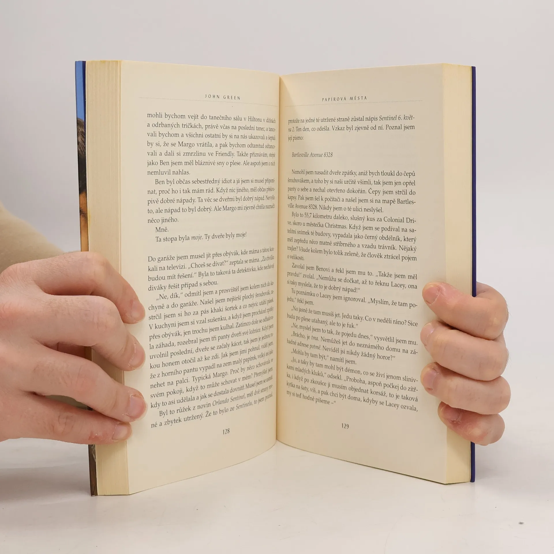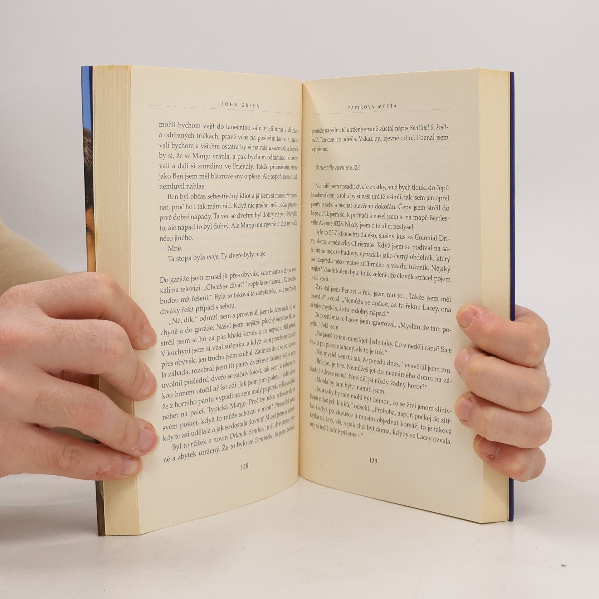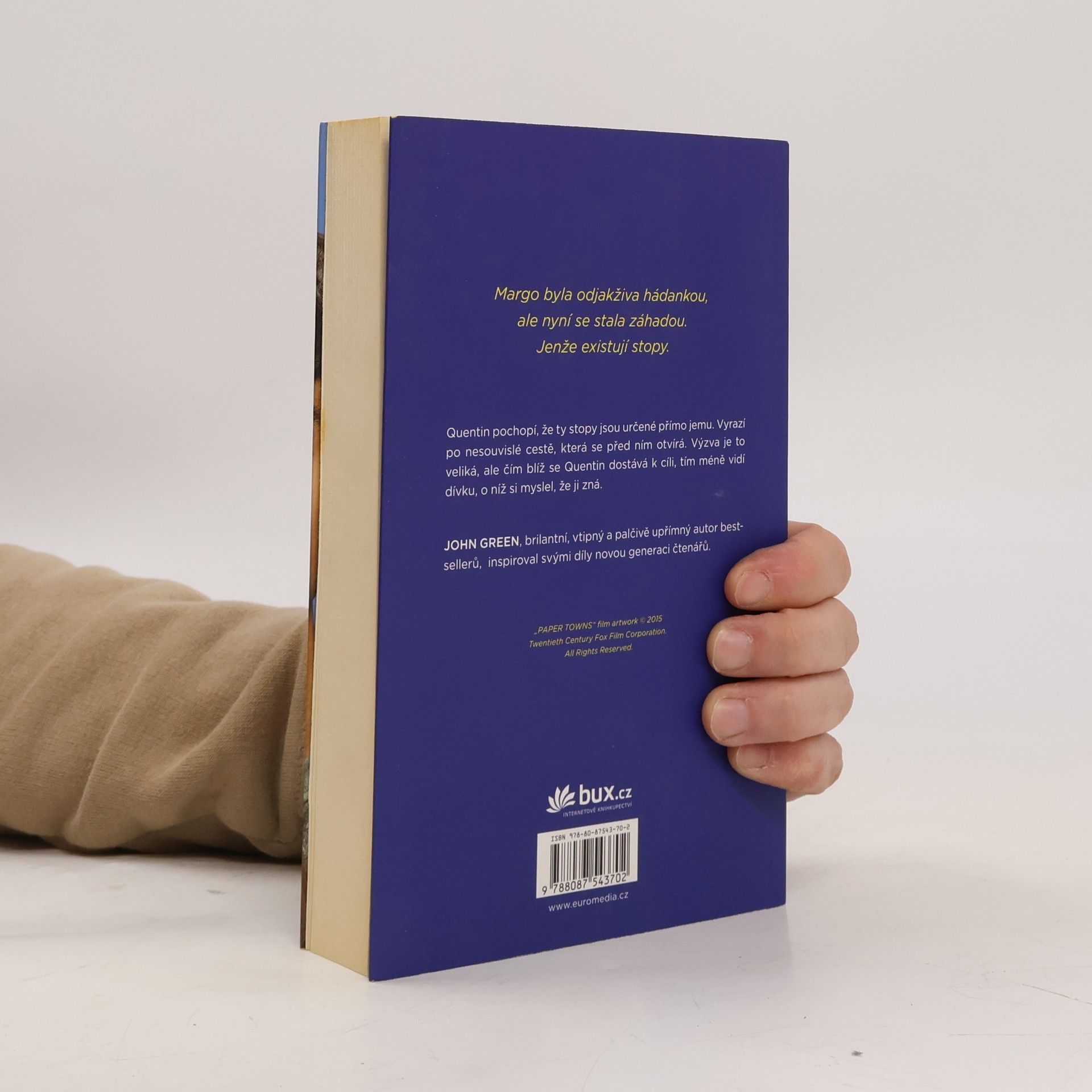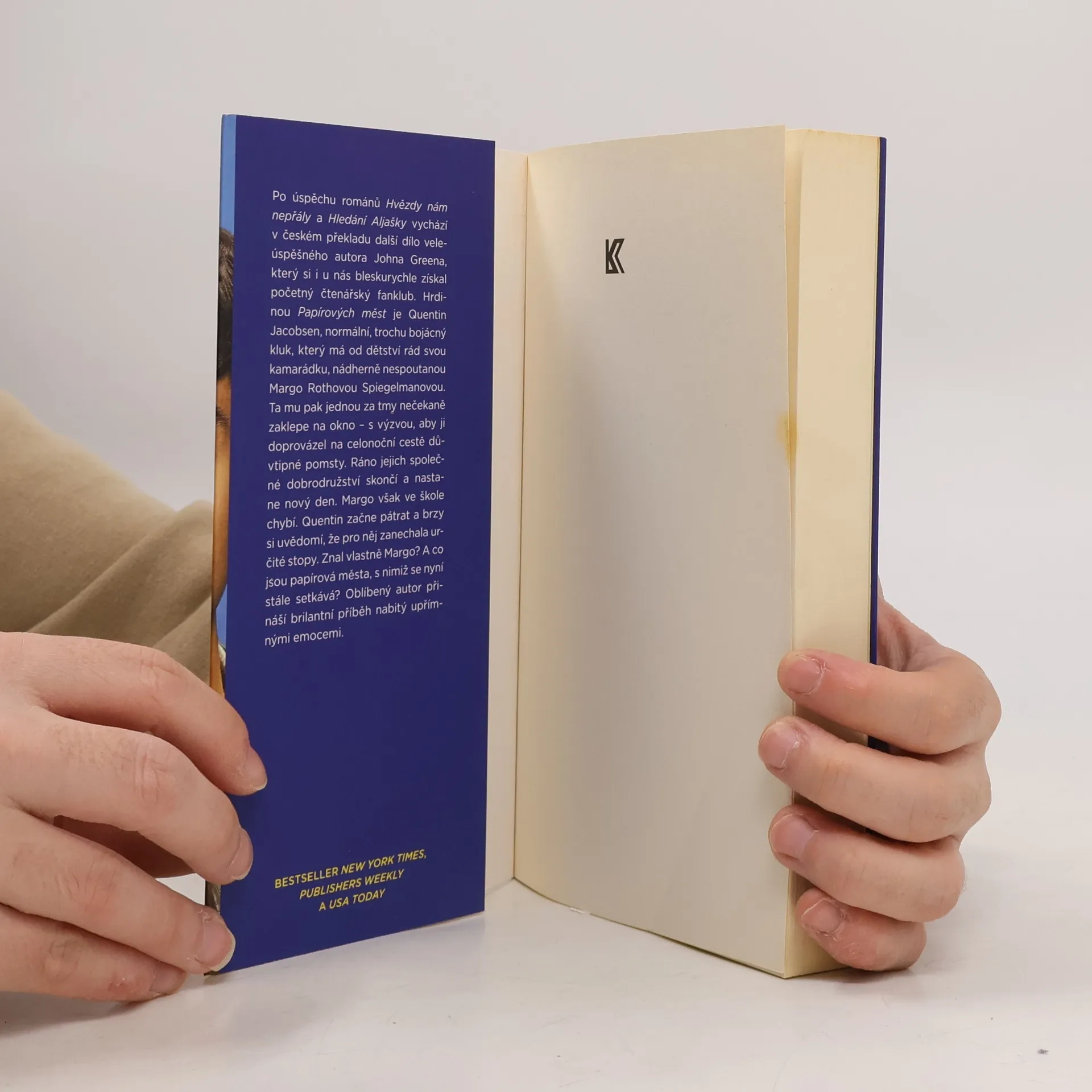 Po úspěchu románů Hvězdy nám nepřály a Hledání Aljašky vychází nyní v českém překladu další dílo veleúspěšného autora Johna Greena, který si i u nás bleskurychle získal početný fanklub. Hrdinou je Quentin Jacobsen, normální, tak trochu bojácný kluk, který má od dětství rád nespoutanou Margo. Ta mu pak jednoho dne nečekaně zaklepe na okno a vtáhne ho do podivuhodného dobrodružství. Když dívka další dny ve škole chybí, Quentin začne pátrat a brzy si uvědomí, že pro něj zanechala určité stopy. Znal vlastně Margo? A co jsou papírová města, s nimiž se nyní stále setkává? Oblíbený autor přináší brilantní příběh nabitý upřímnými emocemi, který nenechá čtenáře chladným.
