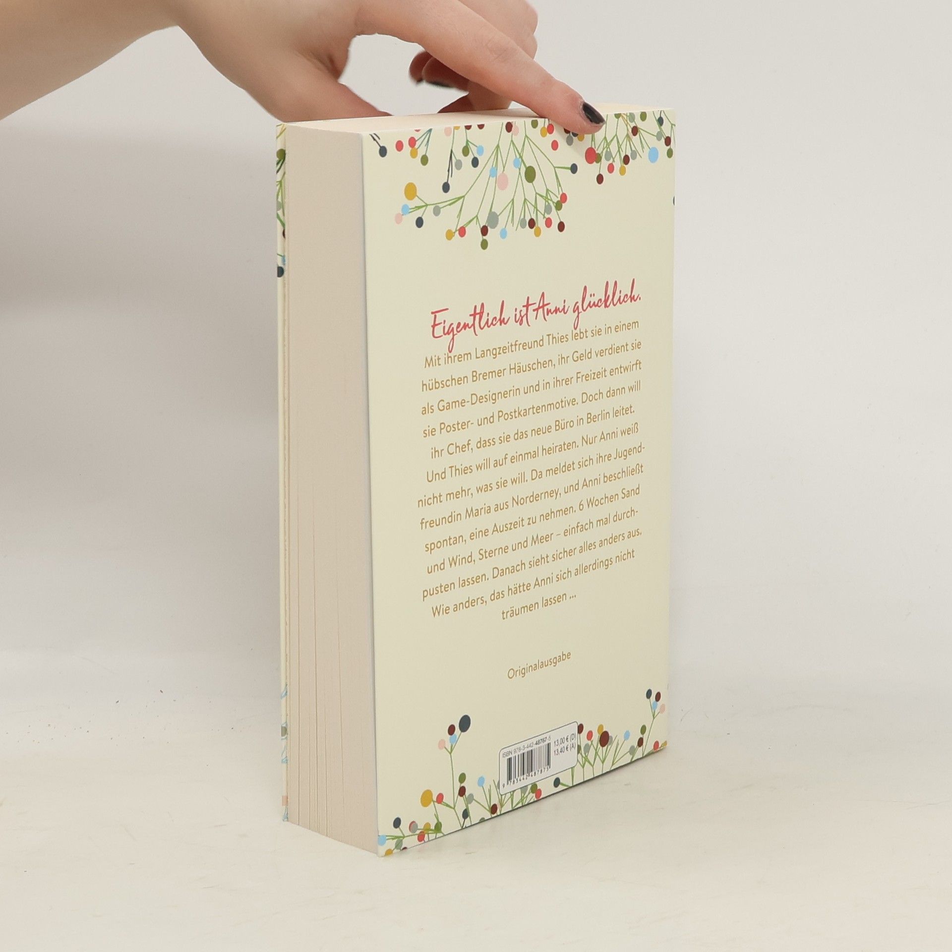 Eigentlich ist Anni glücklich. Mit ihrem Langzeitfreund Thies lebt sie in einem hübschen Bremer Häuschen, ihr Geld verdient sie als Game-Designerin und in ihrer Freizeit entwirft sie Poster- und Postkartenmotive. Doch dann will ihr Chef, dass sie das neue Büro in Berlin leitet. Und Thies will auf einmal heiraten. Nur Anni weiß nicht mehr, was sie will. Da meldet sich ihre Jugendfreundin Maria aus Norderney, und Anni beschließt spontan, eine Auszeit zu nehmen. 6 Wochen Sand und Wind, Sterne und Meer – einfach mal durchpusten lassen. Danach sieht sicher alles anders aus. Wie anders, das hätte Anni sich allerdings nicht träumen lassen ...