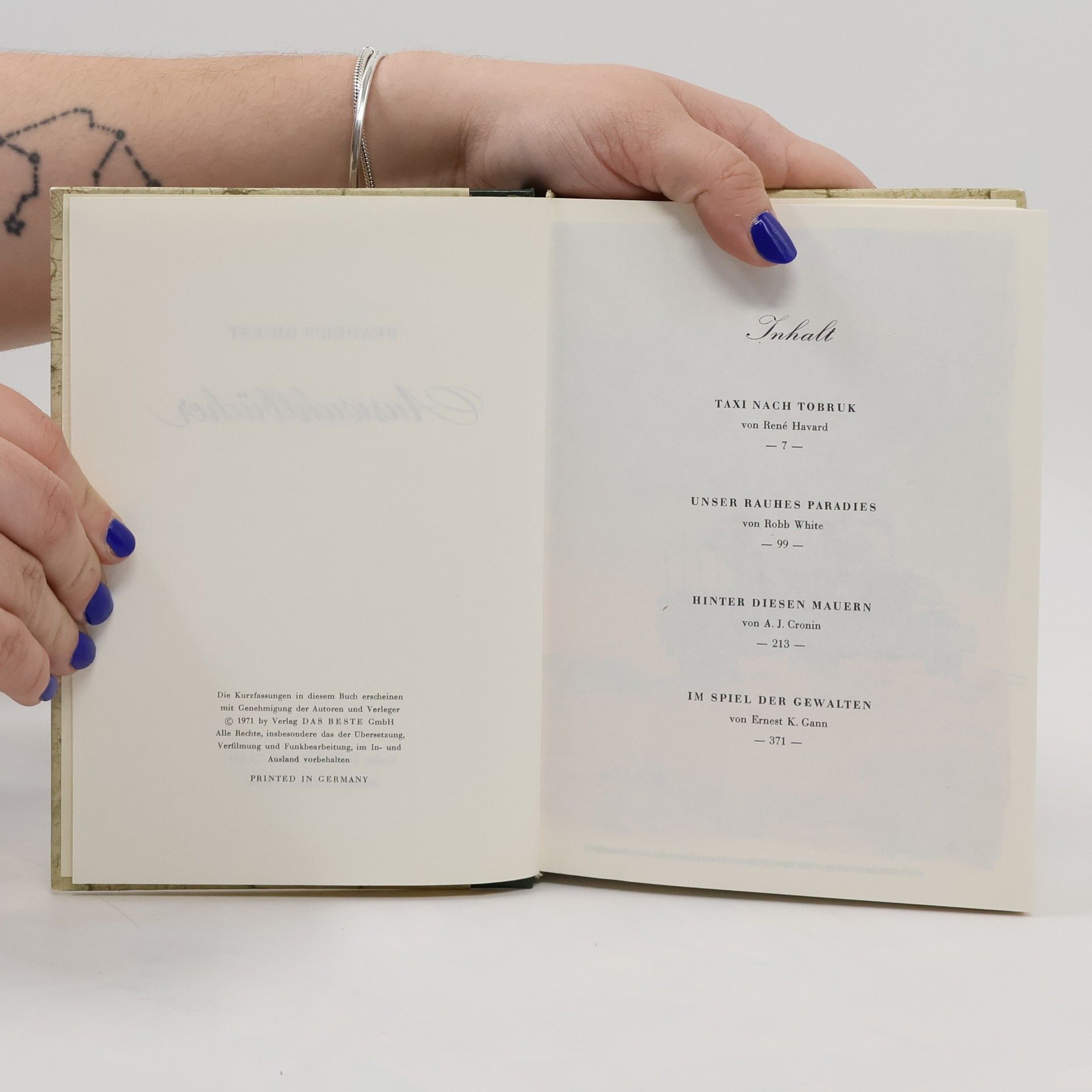 Reader's Digest. Auswahlbücher. Taxi Nach Tobruk. Unser Rauhes Paradies. Hinter Diesen Mauern. Im Spiel der Gewalten, Auteurscollectief