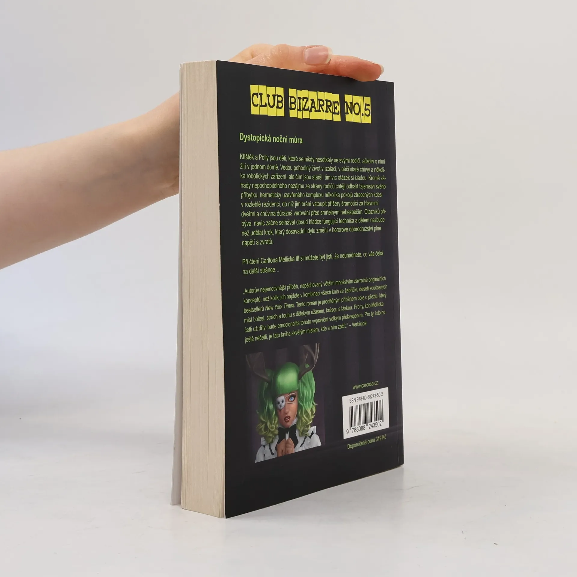 Klíštěk a Polly jsou děti, které se nikdy nesetkaly se svými rodiči, ačkoliv s nimi žijí v jednom domě. Vedou pohodlný život v izolaci, v péči staré chůvy a několika robotických zařízení, ale čím jsou starší, tím víc otázek si kladou. Kromě záhady nepochopitelného nezájmu ze strany rodičů chtějí odhalit tajemství svého příbytku, hermeticky uzavřeného komplexu několika pokojů ztracených kdesi v rozlehlé rezidenci, do níž jim brání vstoupit příšery šramotící za hlavními dveřmi a chůvina důrazná varování před smrtelným nebezpečím. Otazníků přibývá, navíc začne selhávat dosud hladce fungující technika a dětem nezbude než udělat krok, který dosavadní idylu změní v hororové dobrodružství plné napětí a zvratů. Při čtení Carltona Mellicka III si můžete být jisti, že neuhádnete, co vás čeká na další stránce…