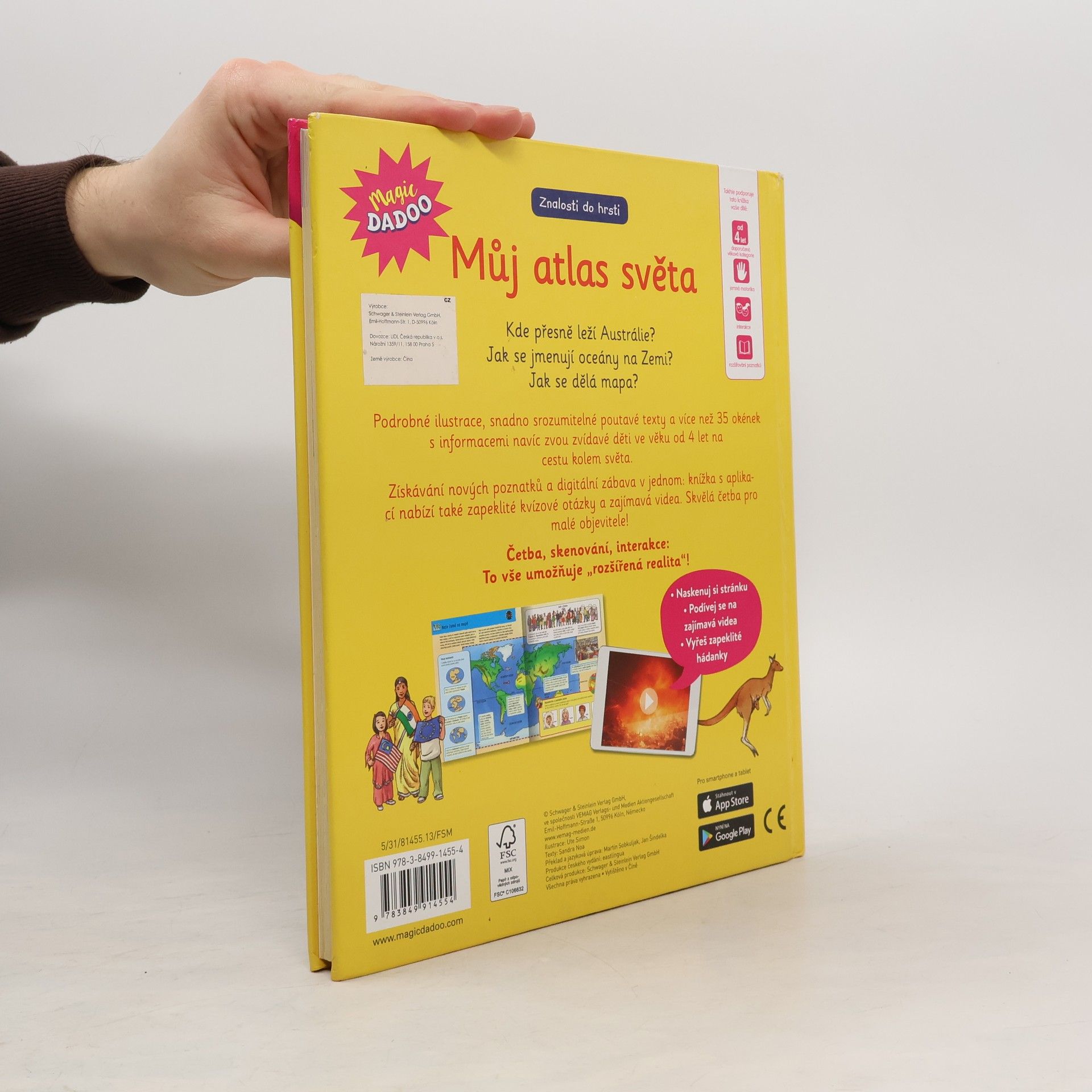 Kde přesně leží Austrálie? Jak se jmenují oceány na Zemi? Jak se dělá mapa? Podrobné ilustrace, snadno srozumitelné poutavé texty a více než 35 okének s informacemi navíc zvou zvídavé děti ve věku od 4 let na cestu kolem světa. Získávání nových poznatků a digitální zábava v jednom: knížka s aplikací nabízí také zapeklité kvízové otázky a zajímavá videa. Skvělá četba pro malé objevitele! Četba, skenování, interakce: To vše umožňuje "rozšířená realita"!