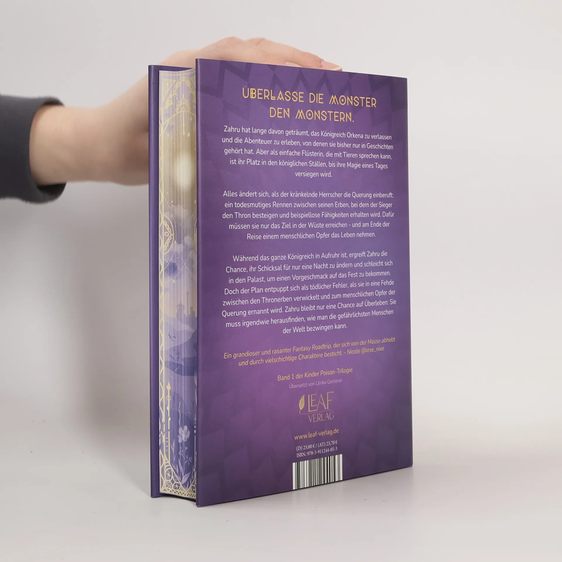 "Überlasse die Monster den Monstern" erzählt die Geschichte von Zahru, einem Mädchen, das als menschliches Opfer in ein tödliches Spiel zwischen drei Thronerben gerät. Um zu überleben, muss sie lernen, die gefährlichsten Menschen der Welt zu besiegen, während sie ihren Traum vom Abenteuer verfolgt.