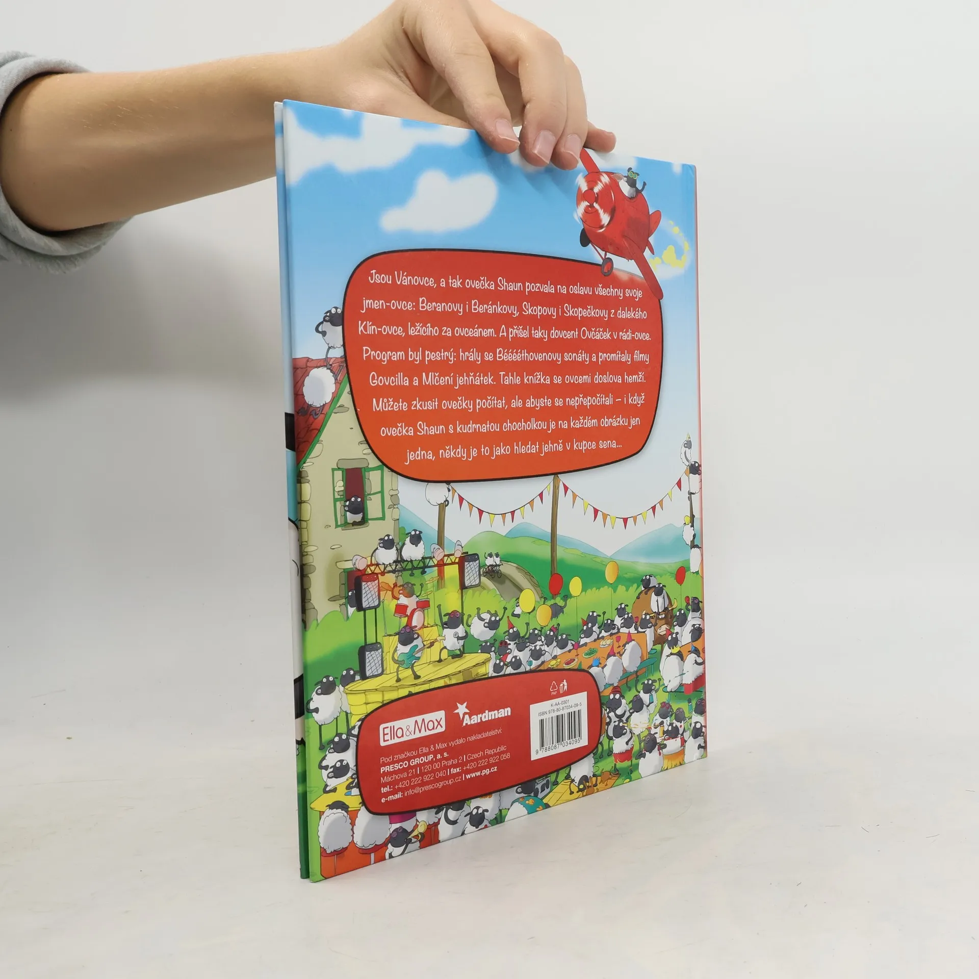 Jsou Vánovce, a tak ovečka Shaun pozvala na oslavu všechny svoje jmen-ovce: Beranovy i Beránkovy, Skopovy i Skopečkovy z dalekého Klín-ovce, ležícího za ovceánem. A prišel taky dovcent Ovčáček v rádi-ovce. Program byl pestrý: hrály se Bééééthovenovy sonáty a promítaly filmy Govcilla a Mlčení jehňátek. Tahle knížka se ovcemi doslova hemží. Mužete zkusit ovečky počítat, ale abyste se nepřepocítali – ikdyž ovečka Shaun s kudrnatou chocholkou je na každém obrázku jen jedna, někdy je to jako hledat jehně v kupce sena…