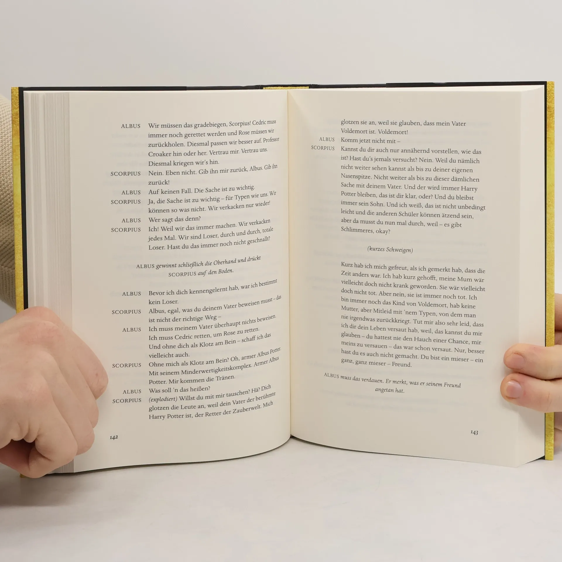 Die neue Harry-Potter-Bühnenfassung für den deutschsprachigen Raum! Mit den für die deutsche Theaterproduktion adaptierten Dialogen und Regieanweisungen. Außerdem gibt es exklusives Bonusmaterial: ein Gespräch zwischen den Darstellern, die Albus und Scorpius verkörpern, sowie farbige Fotos der Hamburger Produktion. Und das alles in einer wunderschönen Hardcover-Ausgabe. »Harry Potter und das verwunschene Kind« kann endlich auch in Deutschland die Zuschauer begeistern. Es war nie leicht, Harry Potter zu sein – und jetzt, als Angestellter des Zaubereiministeriums, Ehemann und Vater von drei Schulkindern, ist sein Leben nicht gerade einfacher geworden. Während Harrys Vergangenheit ihn immer wieder einholt, kämpft sein Sohn Albus mit dem gewaltigen Vermächtnis seiner Familie, mit dem er nichts zu tun haben will. Als Vergangenheit und Gegenwart auf unheilvolle Weise miteinander verschmelzen, gelangen Harry und Albus zu einer bitteren Erkenntnis: Das Dunkle kommt oft von dort, wo man es am wenigsten erwartet.