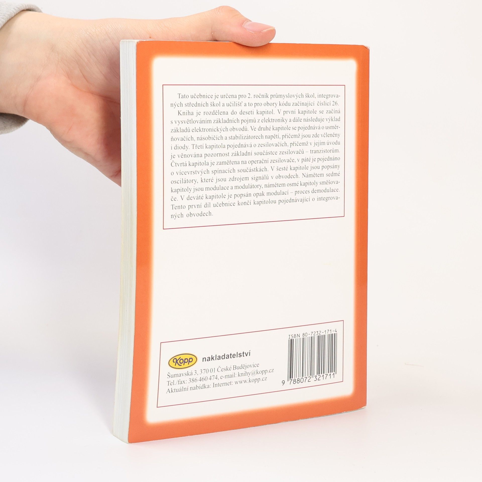 Učebnice Elektroniky I je určena pro obory s kódem začínající na číslici 26. V knize najdete vysvětlení základních pojmů z elektroniky, a další kapitoly pak obsahují základy elektronických obvodů, usměrňovače, násobiče a stabilizátory napětí atd. Závěr učebnice pak již pojednává ointegrovaných obvodech.