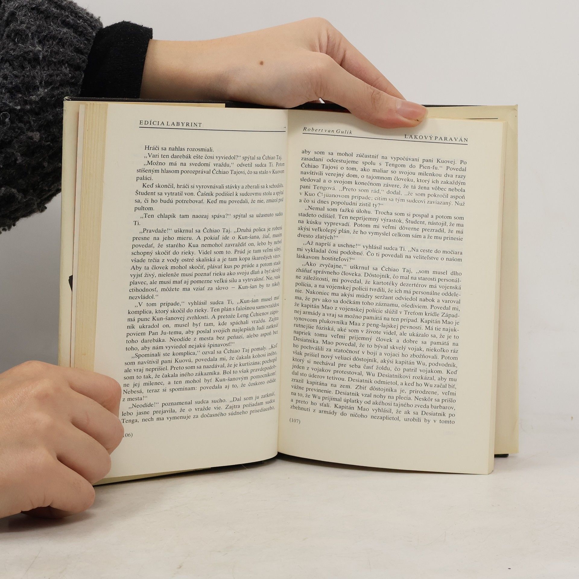 V Lakovanom paraváne sa sudca Ti zastaví na krátku dovolenku v okrese Wej-ping, lenže namiesto oddychu vyrieši tri spletité, navzájom súvisiace prípady. Najkomplikovanejším z nich je vražda manželky okresného sudcu, ktorý sa stáva hlavným podozrivým, hoci prípad obostiera viacero záhadných okolností. V Červenom pavilóne sa sudca Ti ešte v začiatkoch svojej kariéry ocitá na Rajskom ostrove, akéhosi predchodzu súčasného Las Vegas. Pri vyšetrovaní smrti krásnej kurtizány, údajnej samovraždy známeho akademika a tajomstva pavilónu, v ktorom je ubytovaný, odhaľuje súvislosti siahajúce do dávnej minulosti, v ktorých hrajú úlohu najmä ľudské city a osudová vášeň.