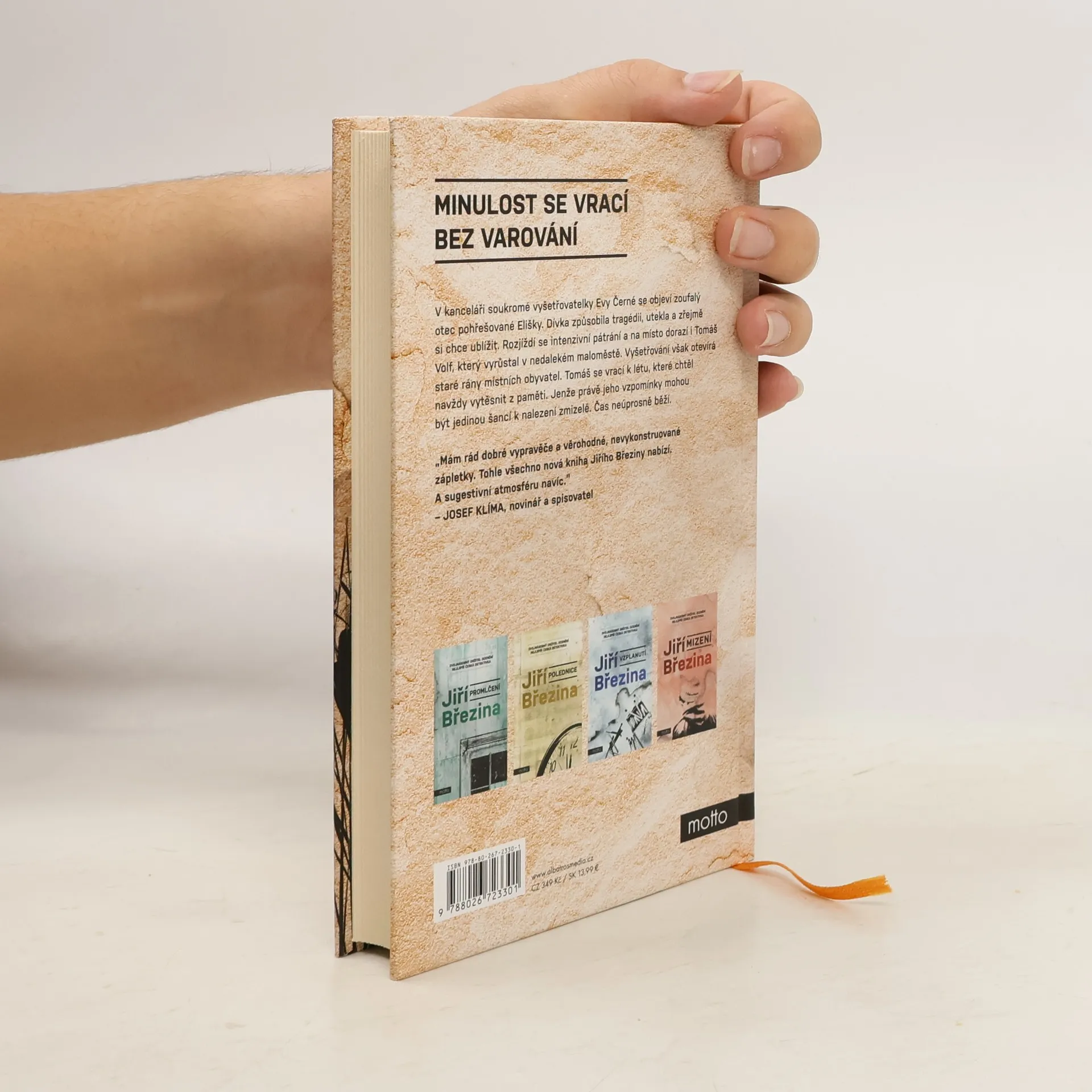 Minulost se vrací bez varování. Pátý případ Tomáše Volfa. V kanceláři soukromé vyšetřovatelky Evy Černé se objeví zoufalý otec pohřešované Elišky. Dívka způsobila tragédii, utekla a zřejmě si chce ublížit. Rozjíždí se intenzivní pátrání a na místo dorazí i Tomáš Volf, který vyrůstal v nedalekém maloměstě. Vyšetřování však otevírá staré rány místních obyvatel. Tomáš se vrací k létu, které chtěl navždy vytěsnit z paměti. Jenže právě jeho vzpomínky mohou být jedinou šancí k nalezení zmizelé. Čas neúprosně běží.Dvojnásobný držitel ceny za nejlepší českou detektivku Jiří Březina se v pátém případu Tomáše Volfa vydává do minulosti, která souvisí se současným případem nejen místem činu. Autor odhaluje dospívání hlavního hrdiny, které ovlivnilo jeho pohled na svět a přimělo ho k zásadnímu rozhodnutí.Tomáš Volf se opět setkává s Evou Černou, kterou přivede pátrání po pohřešované Elišce do jeho rodiště. Dívka způsobila tragédii, utekla a vše nasvědčuje tomu, že si chce ublížit. Vyšetřování však otevírá staré rány místních obyvatel. Tomáš se vrací k létu, které chtěl navždy vytěsnit z paměti. Jenže právě jeho vzpomínky mohou být jedinou šancí k nalezení zmizelé. Čas neúprosně běží a současnost až nepříjemně připomíná patnáct let staré události.