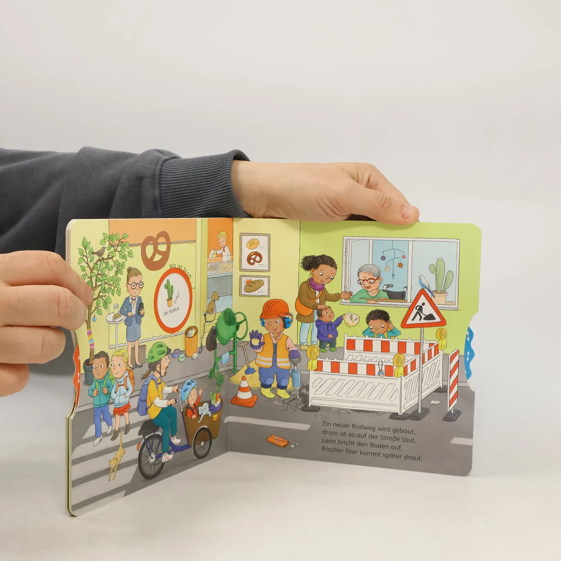 "Sachen suchen auf der Baustelle" begleitet Leon auf verschiedenen Baustellen, wo er seine Arbeitsutensilien sucht. Mit einer Drehscheibe können Kinder spielerisch Gegenstände finden, was die Feinmotorik und Sprachentwicklung fördert. Das Buch kombiniert Mitmach-Elemente, Wimmelbilder und eine unterhaltsame Vorlesegeschichte.