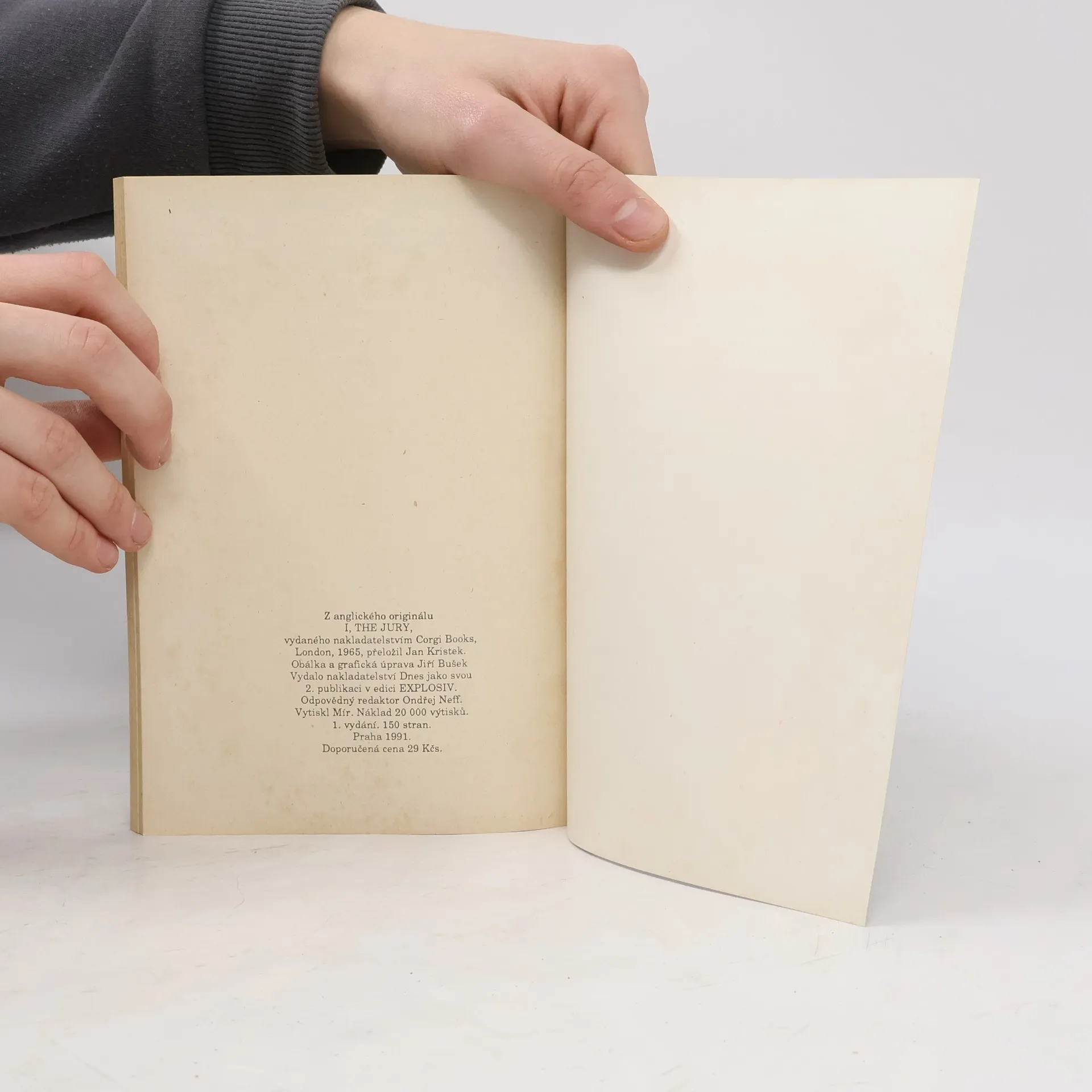 Jmenuji se Hammer. Jsem souhromý detektiv; nejspíš jste mne nikdy nepotkali. Mého přítele taky ne. Býval to můj kámoš, ale je teď mrtev. Zavraždili ho. Udělal to podlý chlap, který se u při tom smál. Když se taková věc stane, nejraději bych všechno roztřískal. Chci se dívat, jak se vrahpřede mnou plazí, jak škemrá o slitování. Pak můj ukazován stiskne spoušť. Mám ale své problémy. Jakmile narazím na stopu, ukáže se krásná ženská. A těm se nedá věřit. Pat Chamberts z oddělení vražd jde po vrahovi také. Když ho dostane, strčí ho před porotu. Jenže když ho chytnu sám, já budu porota, a taky soudce a mistr popravčí.