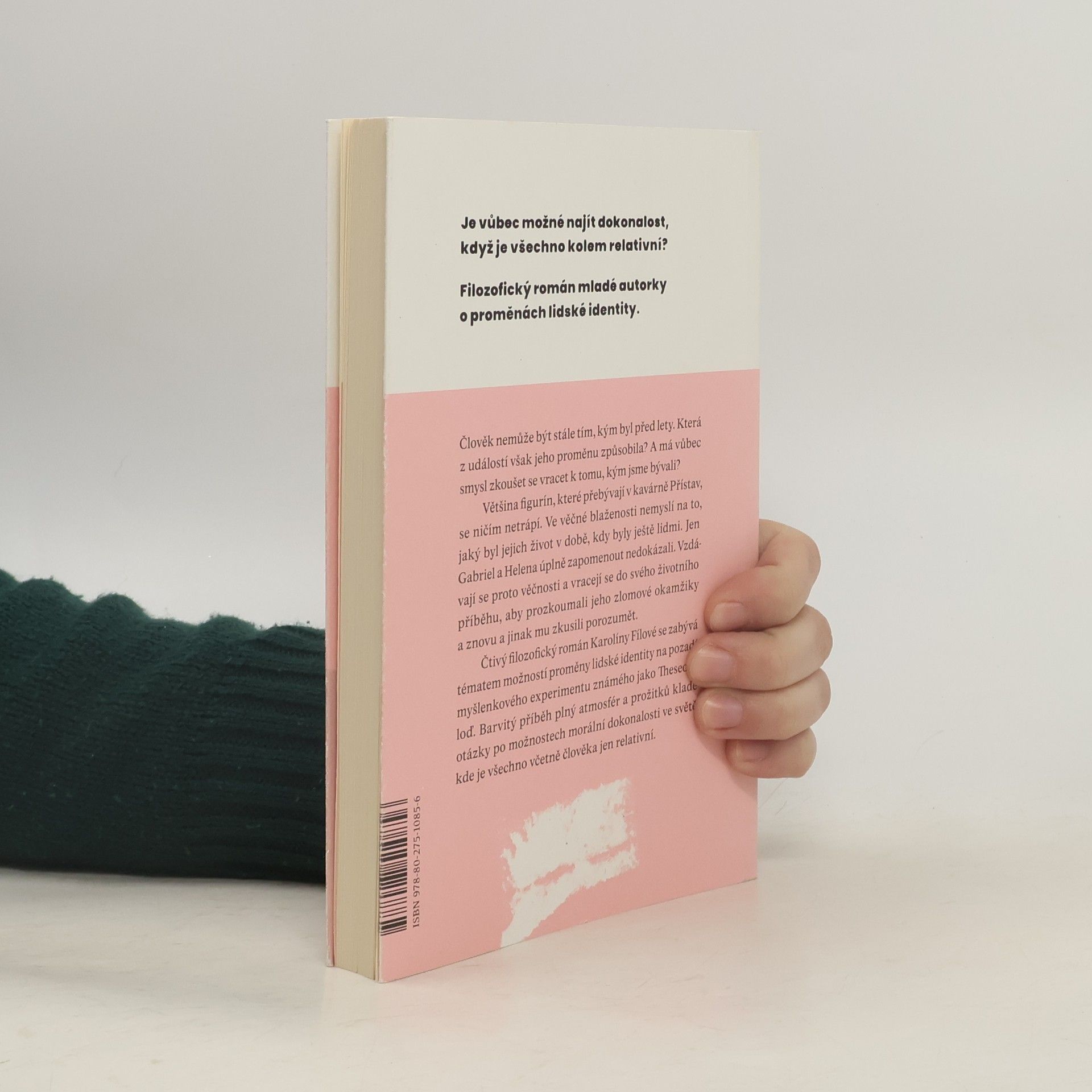 Je vůbec možné najít dokonalost, když všechno kolem je relativní? Když se před vámi objeví kavárna Přístav, už není třeba se trápit. Jednoduše si sednete, necháte si přinášet jeden šálek za druhým a postupně se proměňujete ve figurínu. Vaše věčnost právě začíná! Tělesnou dokonalost a nekonečný poklid mořského šumu získáte pod jedinou podmínkou: už nikdy nepromluvíte. Nabídka, která se neodmítá. Nebo snad ano? Odpověď není ani zdaleka tak jednoznačná, alespoň z pohledu Gabriela, jednoho z návštěvníků kavárny. Oproti všem očekáváním se jednoho dne vytratí a zanechá za sebou pouze nápovědu v podobě pěti pohlednic. Ze světa věčného klidu se ho vydává hledat jeho bývalá přítelkyně. Jenže v pražských ulicích se figuríny mění k nepoznání. Morálně dokonalý svět Přístavu je ten tam a návrat na věčnost se jen tak nekoná. Filozofický román Karolíny Fílové klade otázky po hledání aristotelovského středu coby ctnosti a prozkoumává možnosti dosažení morální dokonalosti ve světě, kde je všechno jen relativní.