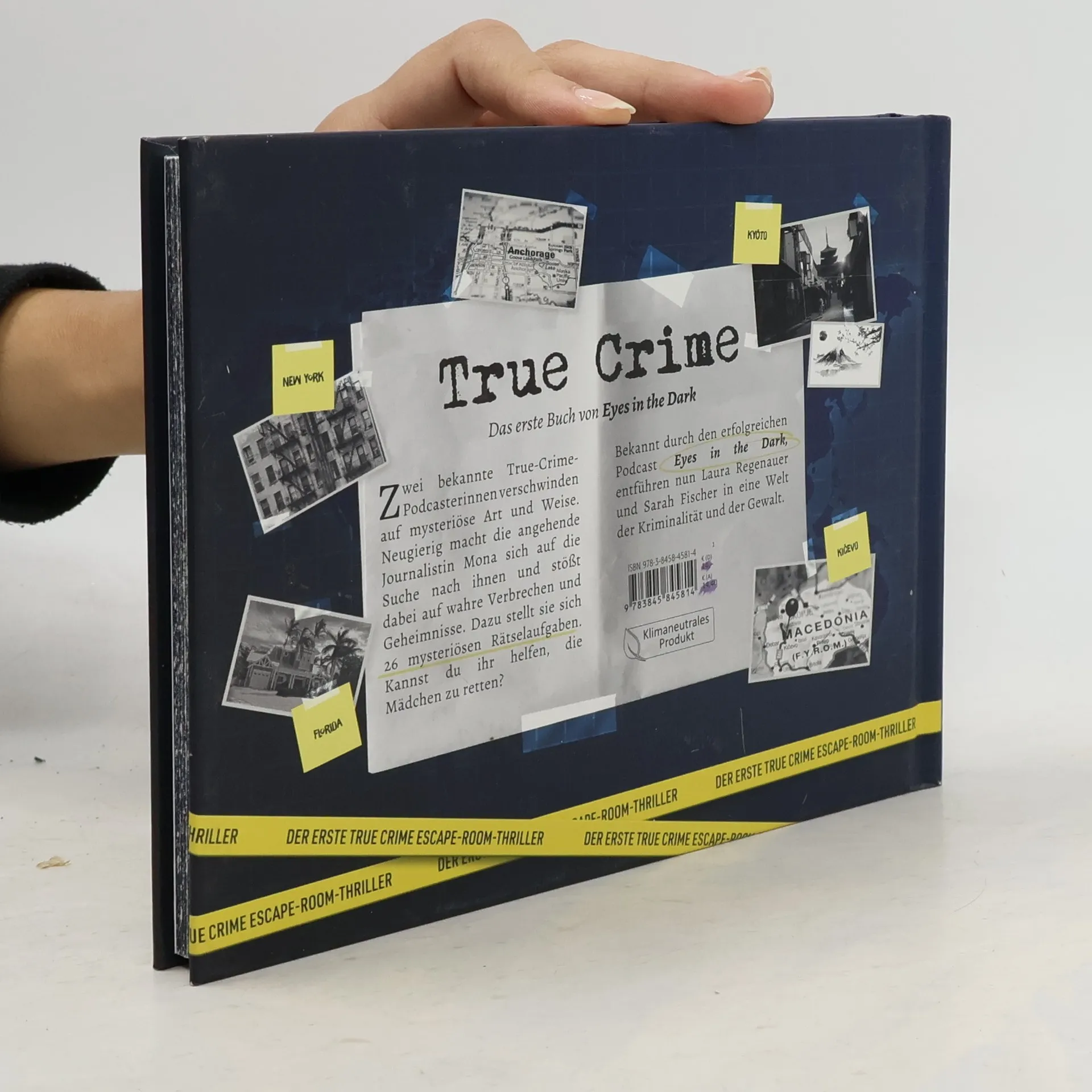 Jetzt NEU: Ein True Crime-Escape-Room-Thriller, in dem die Podcasterinnen Laura Regenauer und Sarah Fischer verschwinden. Die Journalistin Mona sucht nach ihnen und entdeckt wahre Verbrechen. Mit 26 Doppelseiten und kniffligen Rätseln fordert das Buch die Leser heraus, um das Geheimnis zu lüften und zu entkommen.