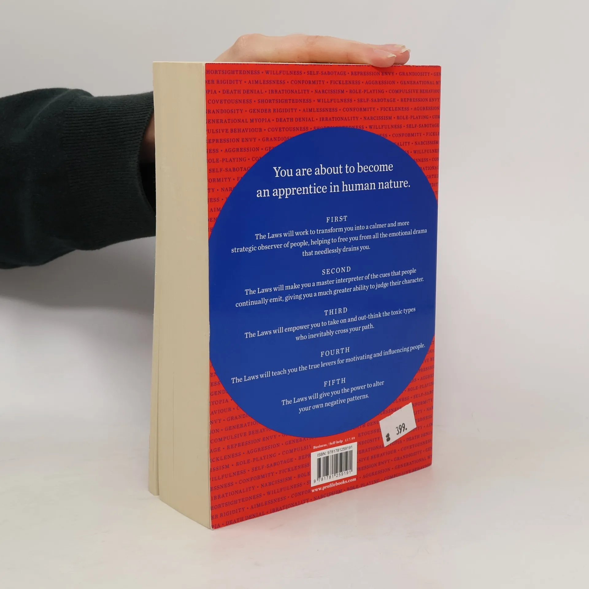 You are about to become an apprentice in human nature. First. The Laws will work to transform you into a calmer and more strategic observer of people, helping to free you from all the emotional drama that needlessly drains you. Second. The Laws will make you a master interpreter of the cues that people continually emit, giving you a much greater ability to judge their character. Third. The Laws will empower you to take on and out-think the toxic types who inevitably cross your path. Fourth. The Laws will teach you the true levers for motivating and influencing people. Fifth. The Laws will give you the power to alter your own negative patterns.