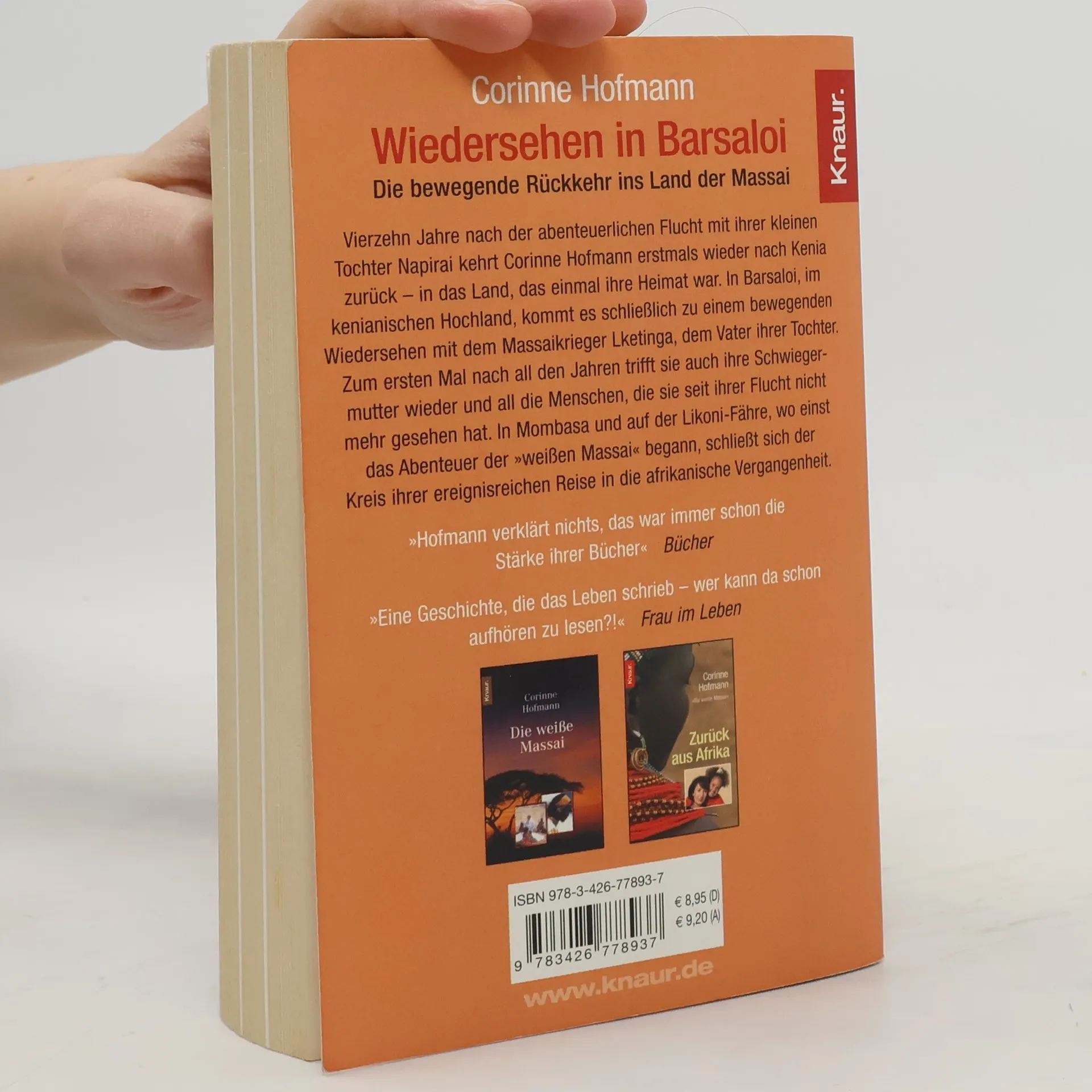Vierzehn Jahre nach der abenteuerlichen Flucht mit ihrer kleinen Tochter Napirai kehrt Corinne Hofmann erstmals wieder nach Kenia zurück – in das Land, das einmal ihre Heimat war.In Barsaloi, im kenianischen Hochland, kommt es schließlich zu einem bewegenden Wiedersehen mit dem Massaikrieger Lketinga, dem Vater ihrer Tochter. Zum ersten Mal nach all den Jahren trifft sie auch ihre Schwiegermutter und all die Menschen, die sie seit ihrer Flucht nicht mehr gesehen hat. In Mombasa und auf der Likoni-Fähre, wo einst das Abenteuer der »weißen Massai« begann, schließt sich der Kreis ihrer ereignisreichen Reise in die afrikanische Vergangenheit.Wiedersehen in Barsaloi ist der dritte Teil der ergreifenden Biographie der weißen Massai.
