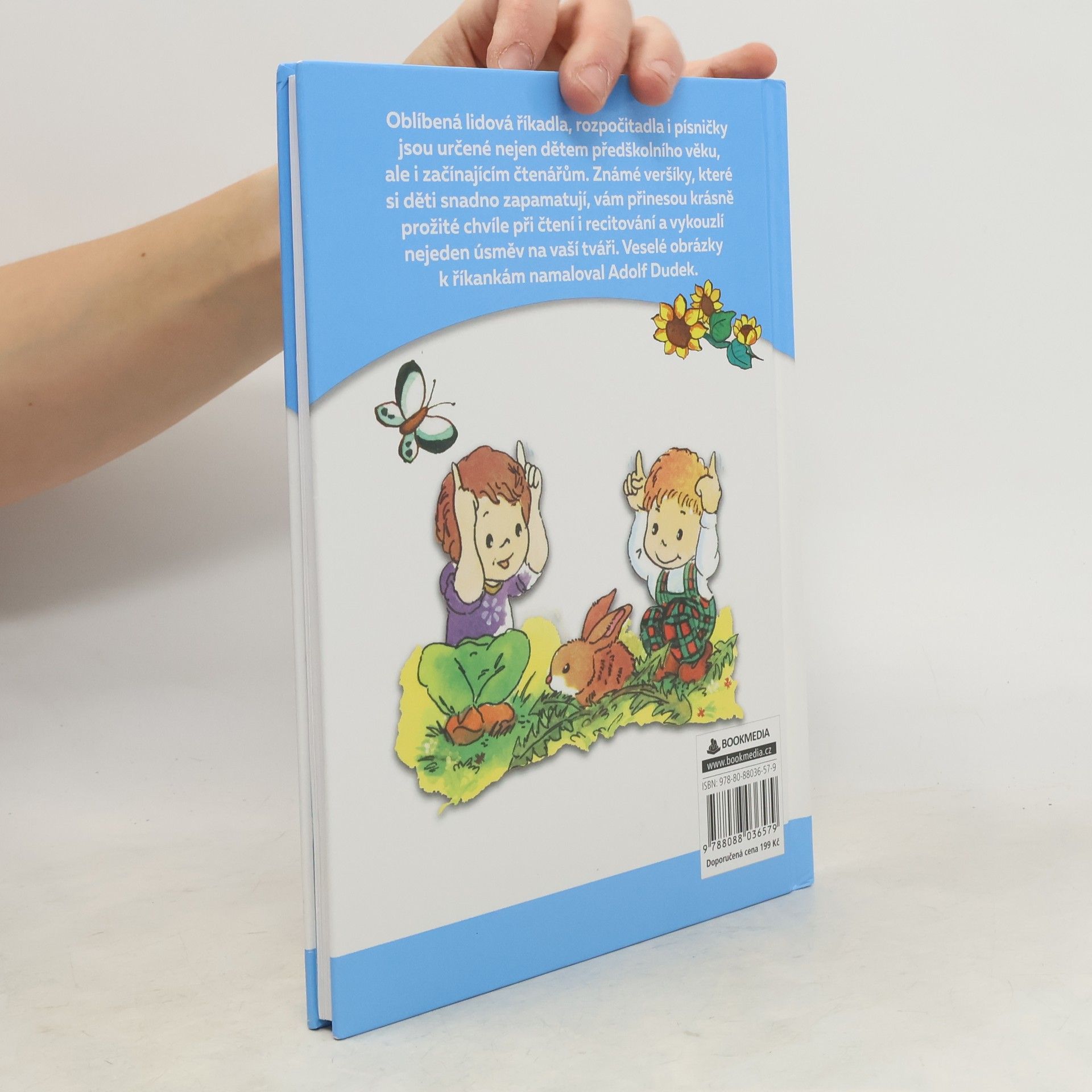 Oblíbená lidová říkadla, rozpočítadla i písničky jsou určené nejen dětem předškolního věku, ale i začínajícím čtenářům. Známé veršíky, které si děti snadno zapamatují, vám přinesou krásně prožité chvíle při čtení i recitování a vykouzlí nejeden úsměv na vaší tváři. Veselé obrázky k říkankám namaloval Adolf Dudek.