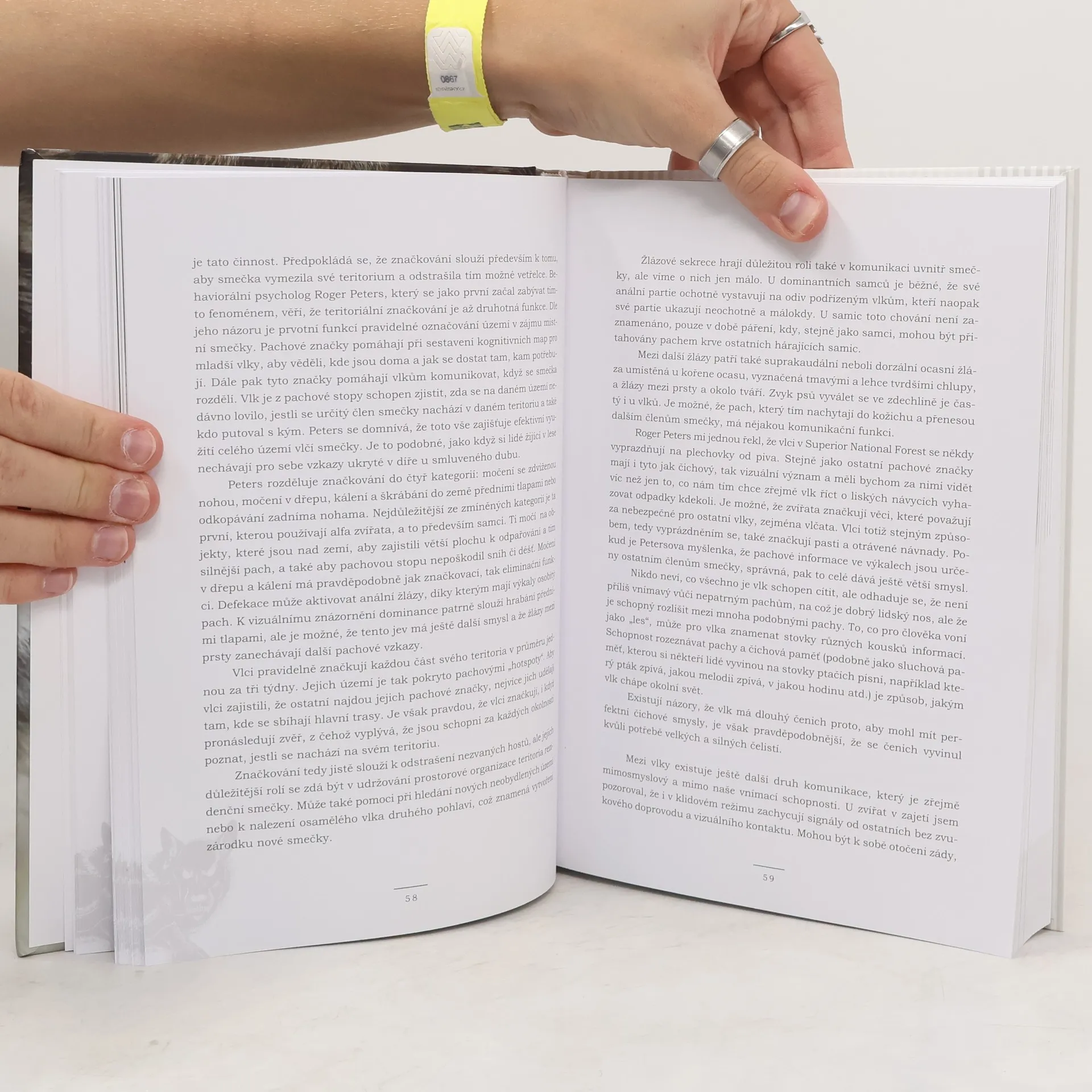 Kniha s názvem O vlcích a lidech je o krásných, odvážných a tajemných zvířatech, jakými vlci bezesporu jsou. Ale také, a to především, o lidech a jejich vztahu k vlkům. Kniha je plná odkazů a ukázek z bajek, pohádek, indiánských příběhů či mýtů, které jsou obrazem doby, místa vzniku a momentálního vztahu člověka a vlka. V první části knihy se čtenář seznámí s vlkem jako takovým - popisuje původ, sociální strukturu, lov, teritorium a další aspekty vlčího života. Druhá část vypráví o vztahu indiánů a Eskymáků k vlkům, který je diametrálně odlišný od toho, jak se k vlkům chovala „moderní civilizace“. Různé, někdy až neuvěřitelně kruté a absurdní způsoby hubení vlka jsou uvedeny ve třetí části. Čtvrtou část autor věnuje historii pohledu člověka na vlka. Knihu uzavírá autorovo zamyšlení nad současnou podobou soužití lidí s vlky. Svěřuje se i s vlastní zkušeností s chovem vlků, s radostmi i úskalími, které toto rozhodnutí přináší. Ačkoliv se jedná o knihu starší, s černobílými fotografiemi, řadí se svým obsahem k „povinné četbě“ každého, kdo má o vlky hlubší zájem. Českým čtenářům ji zprostředkovává překlad Venduly Davidové, která má k vlkům velmi vřelý vztah.