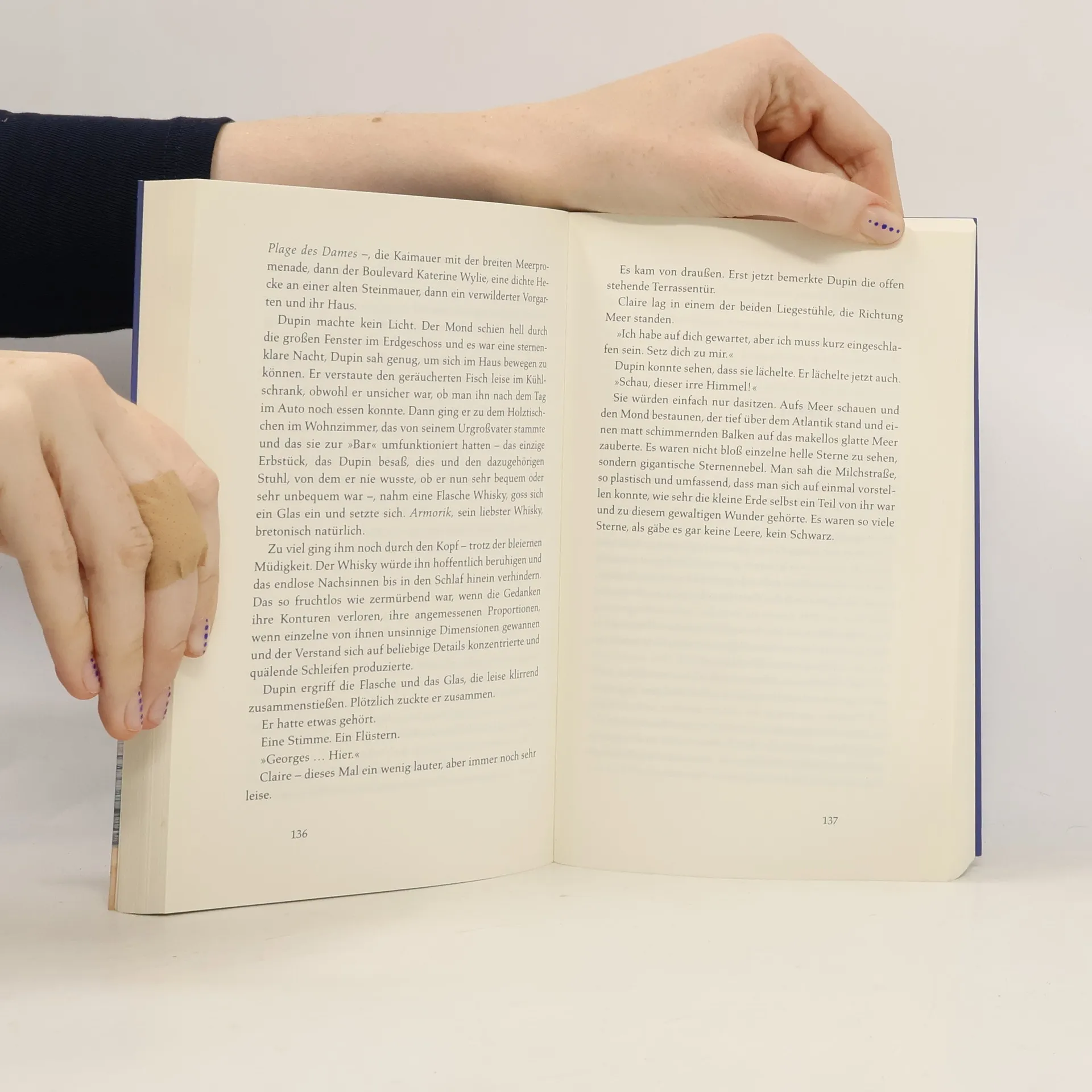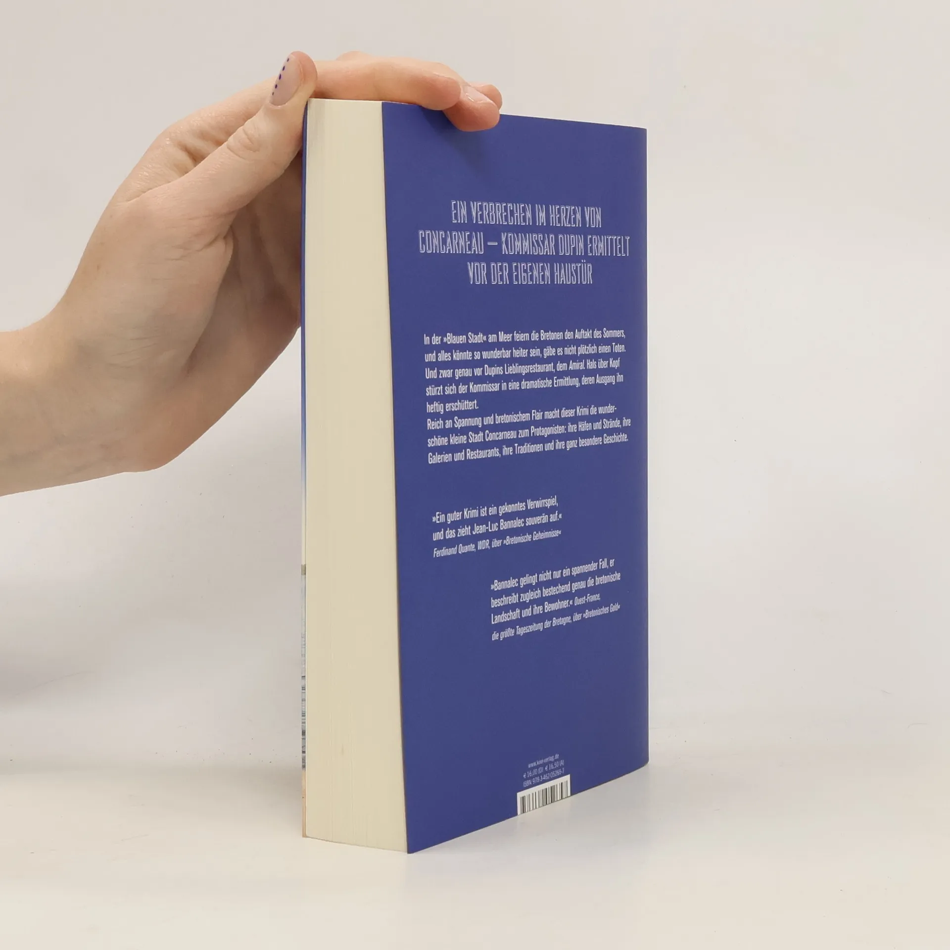 In der »blauen Stadt« Concarneau, kurz vor Pfingsten, feiert die Bevölkerung in der Altstadt Ville Close den Sommerbeginn mit Musik und Tanz. Doch die festliche Stimmung wird jäh gestört, als Kommissar Dupin vor seinem Lieblingsrestaurant, dem Amiral, einen Toten entdeckt. Zu allem Überfluss sind seine Inspektoren im Urlaub und Nolwenn ist unerreichbar. Zusammen mit zwei neuen Kolleginnen muss Dupin herausfinden, wer es auf Docteur Chaboseau, einen angesehenen Arzt aus einer einflussreichen Familie, abgesehen hatte. Weder seine Frau noch enge Freunde, ein Apotheker und ein Weinhändler, können sich einen Reim darauf machen. Könnten die Vorlieben des Arztes, der Kunstsammler war und in lokale Brauereien sowie Fischkonservenfabriken investierte, eine Rolle spielen? Während Dupin fieberhaft nach Hinweisen sucht, kommt es zu einem Anschlag, der die gesamte Stadt in Aufruhr versetzt. Spannend und stimmungsvoll wird Concarneau, mit seinen Häfen, Stränden, Galerien und Traditionen, zum lebendigen Protagonisten dieser Kriminalgeschichte, die die Besonderheiten der Stadt und ihrer Bewohner eindrucksvoll einfängt.