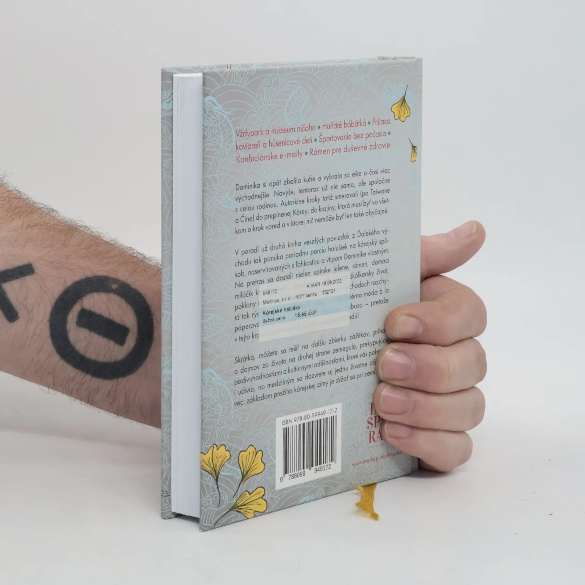 Voľné pokračovanie titulu Mačací kožuch a ťava pri Čínskom múre. Vždypark a múzeum ničoho - Huňaté bábätká - Pršiaca kaviareň a húsenicové deti - Rámen pre duševné zdravie - Konfuciánske e-maily - Športovanie bez počasia Dominika si opäť zbalila kufre a vybrala sa ešte o čosi viac východnejšie. Navyše, tentoraz už nie sama, ale spoločne s celou rodinou. Autorkine kroky totiž smerovali (po Taiwane a Číne) do preplnenej Kórey; do krajiny, ktorá musí byť vo všetkom o krok vpred a v ktorej nič nemôže byť len také obyčajné. V poradí už druhá kniha veselých poviedok z Ďalekého východu tak ponúka poriadnu porciu halušiek na kórejský spôsob, naservírovaných s ľahkosťou a vtipom Dominike vlastným. Na pretras sa dostali nielen upírske jelene, rámen, domáci miláčik kimči a jedlo všeobecne, ale takisto škôlkarsky život, poklony alebo bublinková fólia, ktorá sa v obchodoch rozchytá tak rýchlo ako u nás teplé rožky, a tiež ležérna móda à la páperová vetrovka s gumenými šľapkami naboso – pretože v tejto krajine sa kreativite žiadne medze nekladú! Skrátka, môžete sa tešiť na ďalšiu zbierku zážitkov, príhod a dojmov zo života na druhej strane zemegule, prekypujúcu podivuhodnosťami a kultúrnymi odlišnosťami, ktoré vás pobavia i udivia, no medziiným sa dozviete aj jednu životne dôležitú vec: základom prežitia kórejskej zimy je držať sa pri zemi.