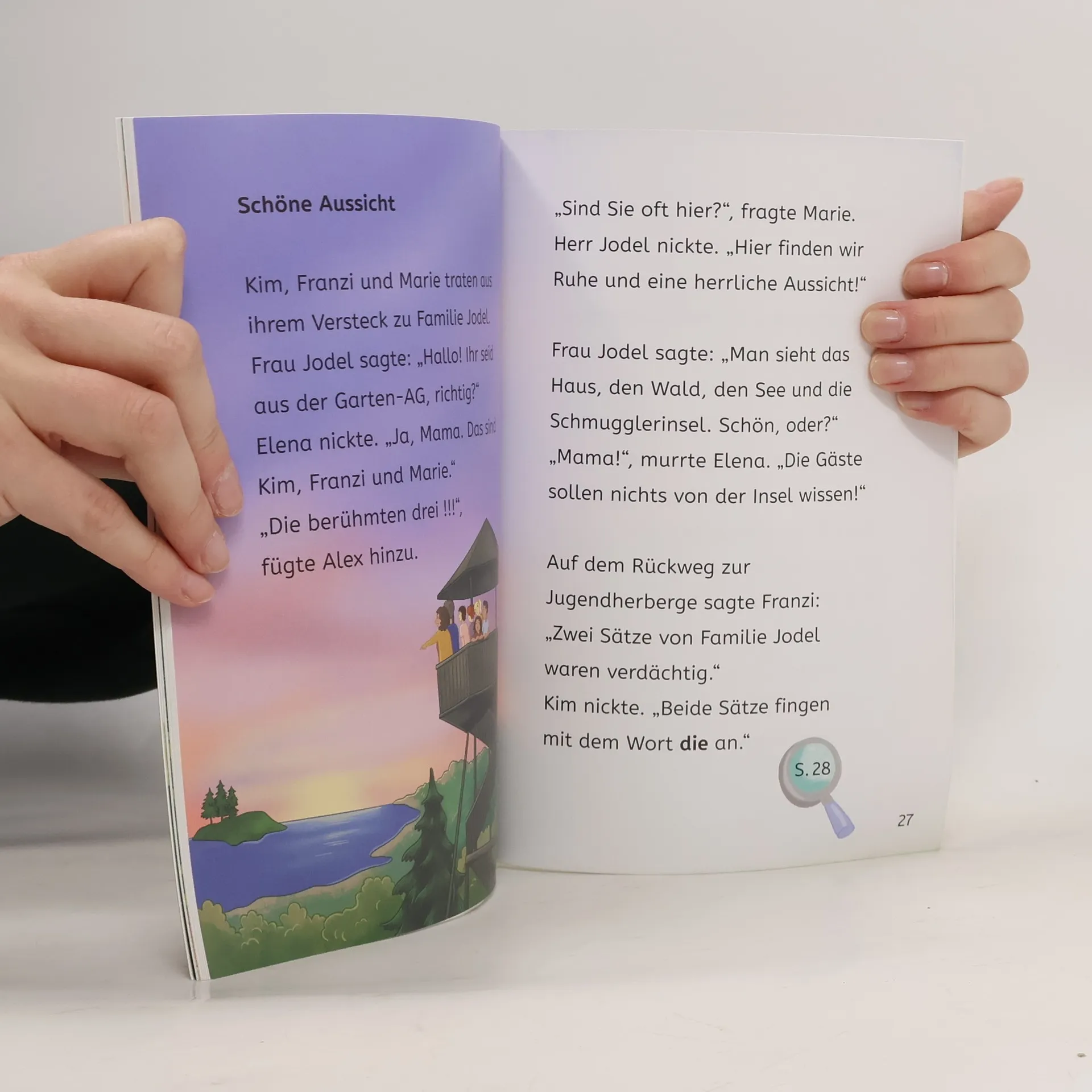 Kim, Franzi und Marie fahren ins Schullandheim und entdecken, dass einige Mitschüler Dinge vermissen. Die drei !!! ermitteln und folgen einer Spur zu einer Insel im See. Ein spannender und humorvoller Krimi, der zum Lesen lernen einlädt, mit interaktiven Rätseln und farbigen Illustrationen.
