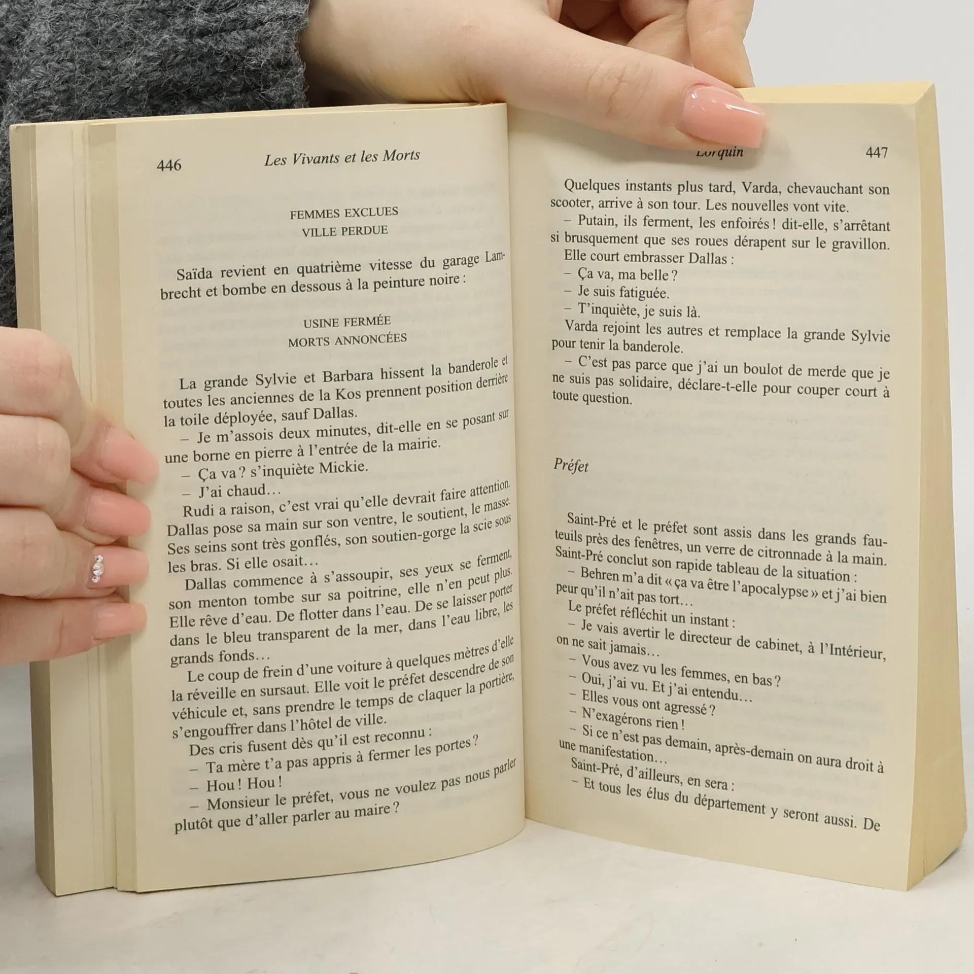 Lui, c’est Rudi. Il n’a pas trente ans. Elle, c’est Dallas. Bien malin qui pourrait dire pourquoi tout le monde l’appelle comme ça. Même elle a oublié son nom de baptême... Rudi et Dallas travaillent à la Kos, une usine de fibre plastique. Le jour où l’usine ferme, c’est leur vie qui vole en éclats, alors que tout s’embrase autour d’eux. A travers l’épopée d’une cinquantaine de personnages, Les Vivants et les Morts est le roman d’amour d’un jeune couple emporté dans le torrent de l’histoire contemporaine. Entre passion et insurrection, les tourments, la révolte, les secrets de Rudi et de Dallas sont aussi ceux d’une ville où la lutte pour la survie dresse les uns contre les autres, ravage les familles, brise les règles intimes, sociales, politiques.Dans ce monde où la raison financière l’emporte sur le souci des hommes, qui doit mourir ? Qui peut vivre ?