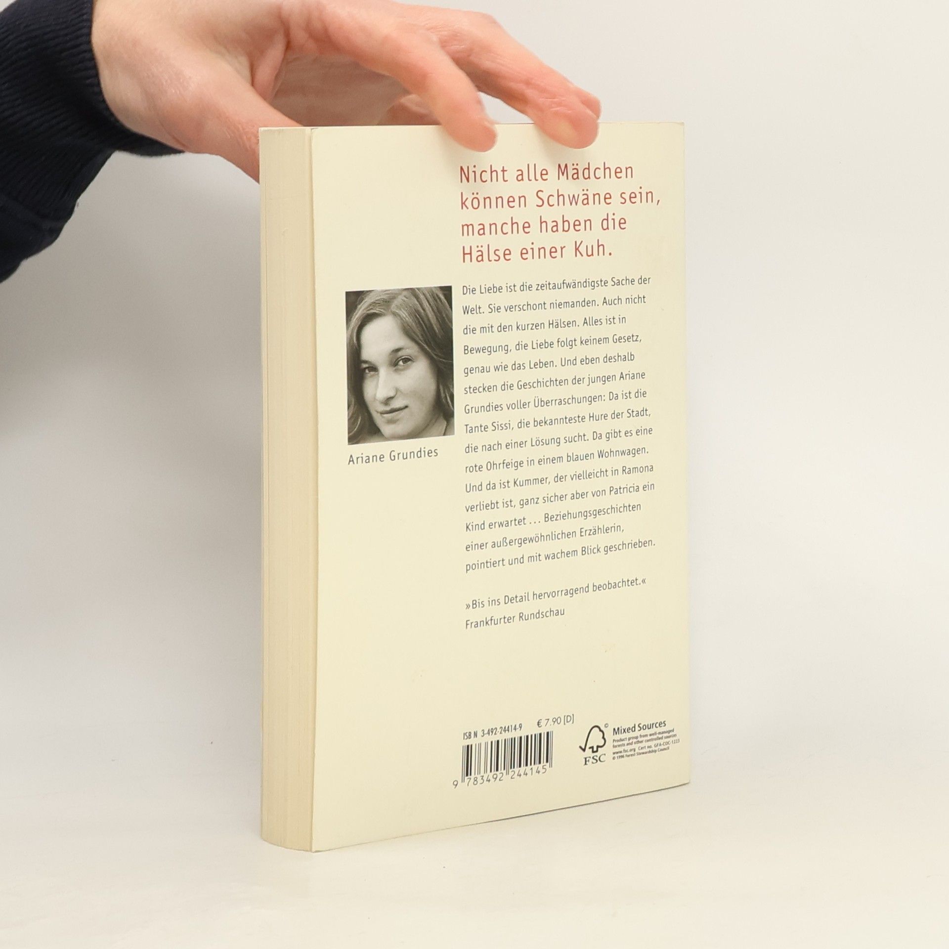 Die Liebe ist die zeitaufwändigste Sache der Welt. Sie verschont niemanden. Auch nicht die mit den kurzen Hälsen. Alles ist in Bewegung, die Liebe folgt keinem Gesetz, genau wie das Leben. Und eben deshalb stecken die Geschichten der jungen Ariane Grundies voller Überraschungen: Da ist ihre Tante Sissi, die bekannteste Hure der Stadt, die nach einer Lösung sucht. Da gibt es eine rote Ohrfeige in einem blauen Wohnwagen. Und da ist Kummer, der vielleicht in Ramona verliebt ist, ganz sicher aber von Patricia ein Kind erwartet ... Beziehungsgeschichten einer außergewöhnlichen Erzählerin, pointiert und mit wachem Blick geschrieben. >Bis ins Detail hervorragend beobachtet.