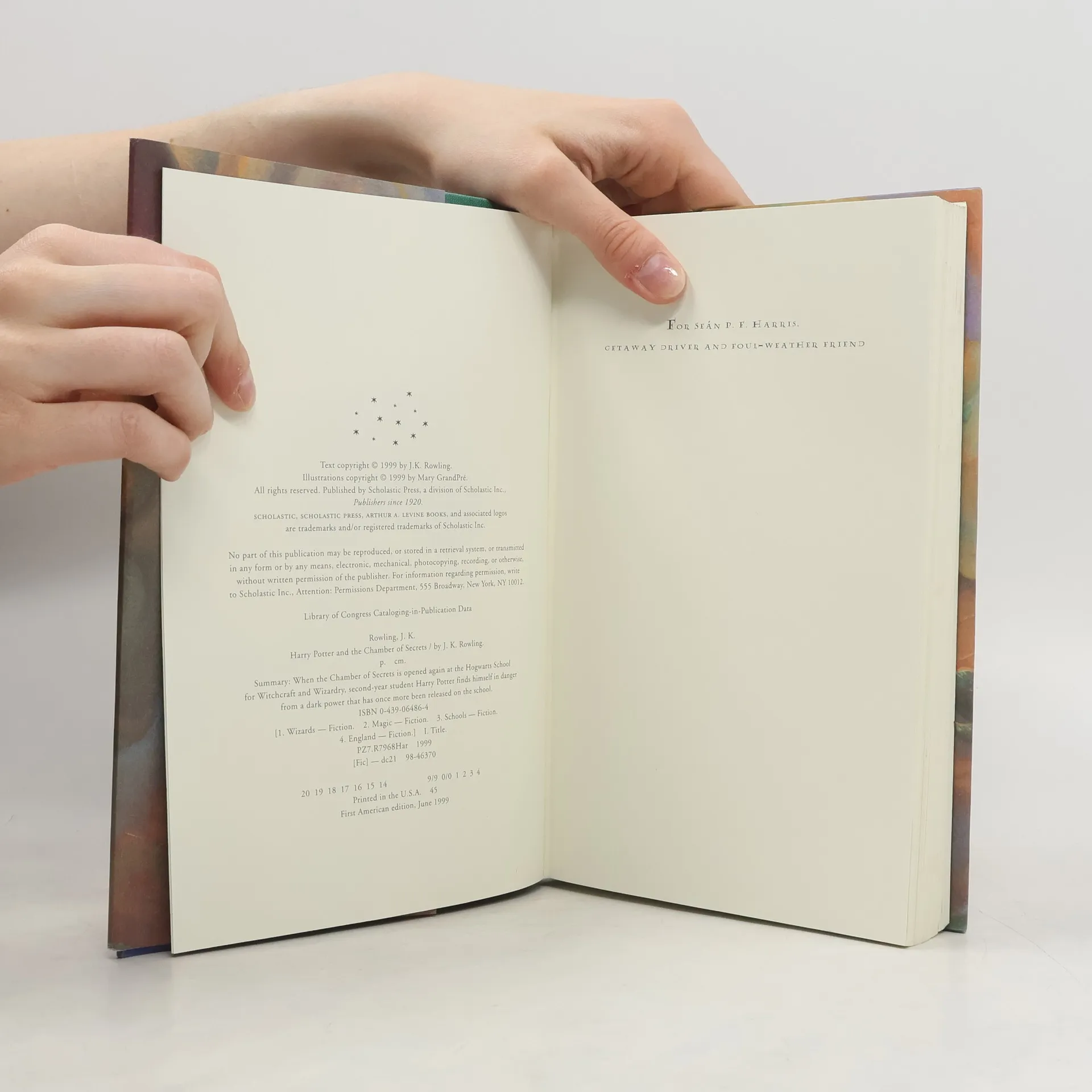 The Dursleys were so mean and hideous that summer that all Harry Potter wanted was to get back to the Hogwarts School for Witchcraft and Wizardry. But just as he’s packing his bags, Harry receives a warning from a strange, impish creature named Dobby who says that if Harry Potter returns to Hogwarts, disaster will strike. And strike it does. For in Harry’s second year at Hogwarts, fresh torments and horrors arise, including an outrageously stuck-up new professor, Gilderoy Lockhart, a spirit named Moaning Myrtle who haunts the girls’ bathroom, and the unwanted attentions of Ron Weasley’s younger sister, Ginny. But each of these seem minor annoyances when the real trouble begins, and someone - or something - starts turning Hogwarts students to stone. Could it be Draco Malfoy, a more poisonous rival than ever? Could it possibly be Hagrid, whose mysterious past is finally told? Or could it be the one everyone at Hogwarts most suspects…Harry Potter himself! (front flap)