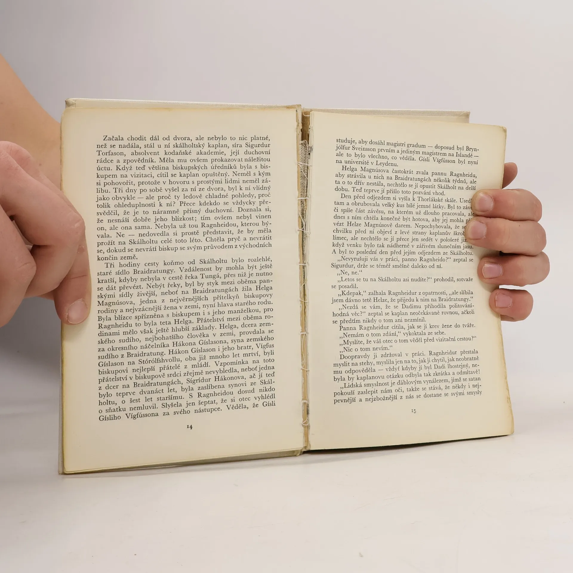 První dva díly (Panna Ragnheidur, Mala domestica) čtyřdílného románového cyklu Skálholt významného představitele zakladatelské generace moderní islandské literatury (1888-1945). Široce koncipovaná sága o tragické lásce dcery islandského biskupa je vyprávěna podle skutečného příběhu z druhé poloviny 17. století. Hrdinka se odmítá provdat za muže ze vznešeného a bohatého rodu, kterého jí zvolil otec, a podléhá svodu mladého kněze a má s ním dítě.Nepochopení a nepřátelství otce pro tento domněle hříšný čin přerušuje jen její nemoc a nakonec smrt. 25-043-73