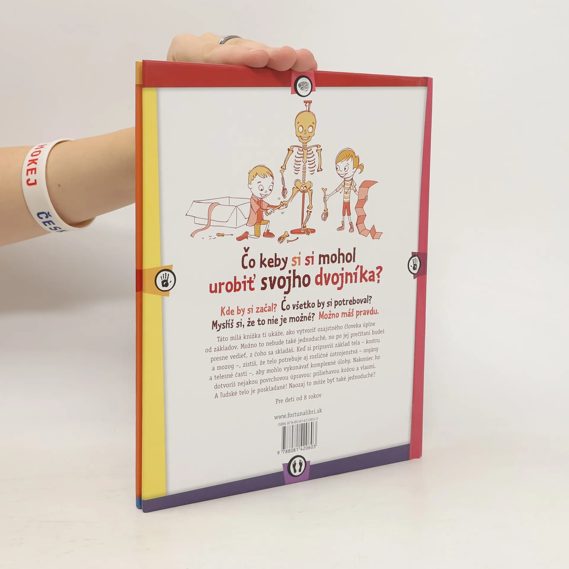 Táto milá knižka ti ukáže, ako vytvoriť ozajstného človeka úplne od základov. Možno to nebude také jednoduché, no po jej prečítaní budeš presne vedieť, z čoho sa skladáš. Keď si pripravíš základ tela kostru a mozog , zistíš, že telo potrebuje aj rozličné ústrojenstvá orgány a telesné časti , aby mohlo vykonávať komplexné úlohy. Nakoniec ho dotvoríš nejakou povrchovou úpravou: priliehavou kožou a vlasmi. A ľudské telo je poskladané! Naozaj to môže byť také jednoduché?