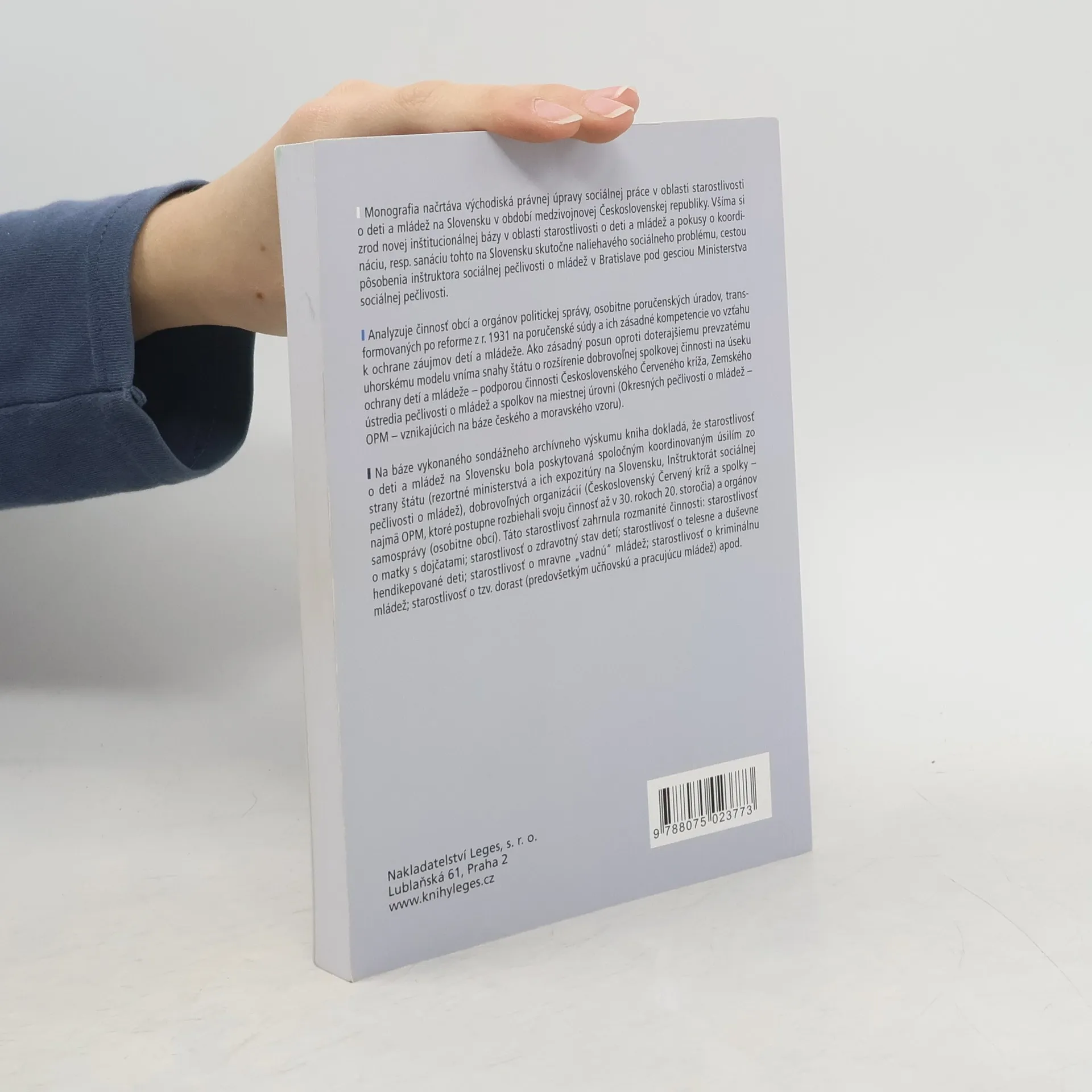 Monografia sa zaoberá právnou úpravou sociálnej práce v oblasti starostlivosti o deti a mládež na Slovensku počas medzivojnovej Československej republiky. Skúma vznik novej inštitucionálnej bázy a pokusy o koordináciu v riešení naliehavého sociálneho problému, pričom sa zameriava na pôsobenie inštruktora sociálnej pečlivosti o mládež v Bratislave pod gesciou Ministerstva sociálnej pečlivosti. Analyzuje činnosť obcí a politických orgánov, najmä poručenských úradov a poručenských súdov po reforme z roku 1931, a ich kompetencie v ochrane záujmov detí a mládeže. Zásadným posunom oproti uhorskému modelu sú snahy štátu o podporu dobrovoľnej činnosti v oblasti ochrany detí a mládeže, vrátane aktivít Československého Červeného kríža a miestnych spolkov (Okresné pečlivosti o mládež). Kniha na základe archívneho výskumu dokladá, že starostlivosť o deti a mládež bola výsledkom koordinovaného úsilia štátu, dobrovoľných organizácií a samosprávy. Starostlivosť zahŕňala rôzne aktivity, ako sú podpora matiek s dojčatami, zdravotná starostlivosť o deti, pomoc telesne a duševne hendikepovaným, podpora mravne „vadnej“ mládeže a starostlivosť o kriminálnu mládež.