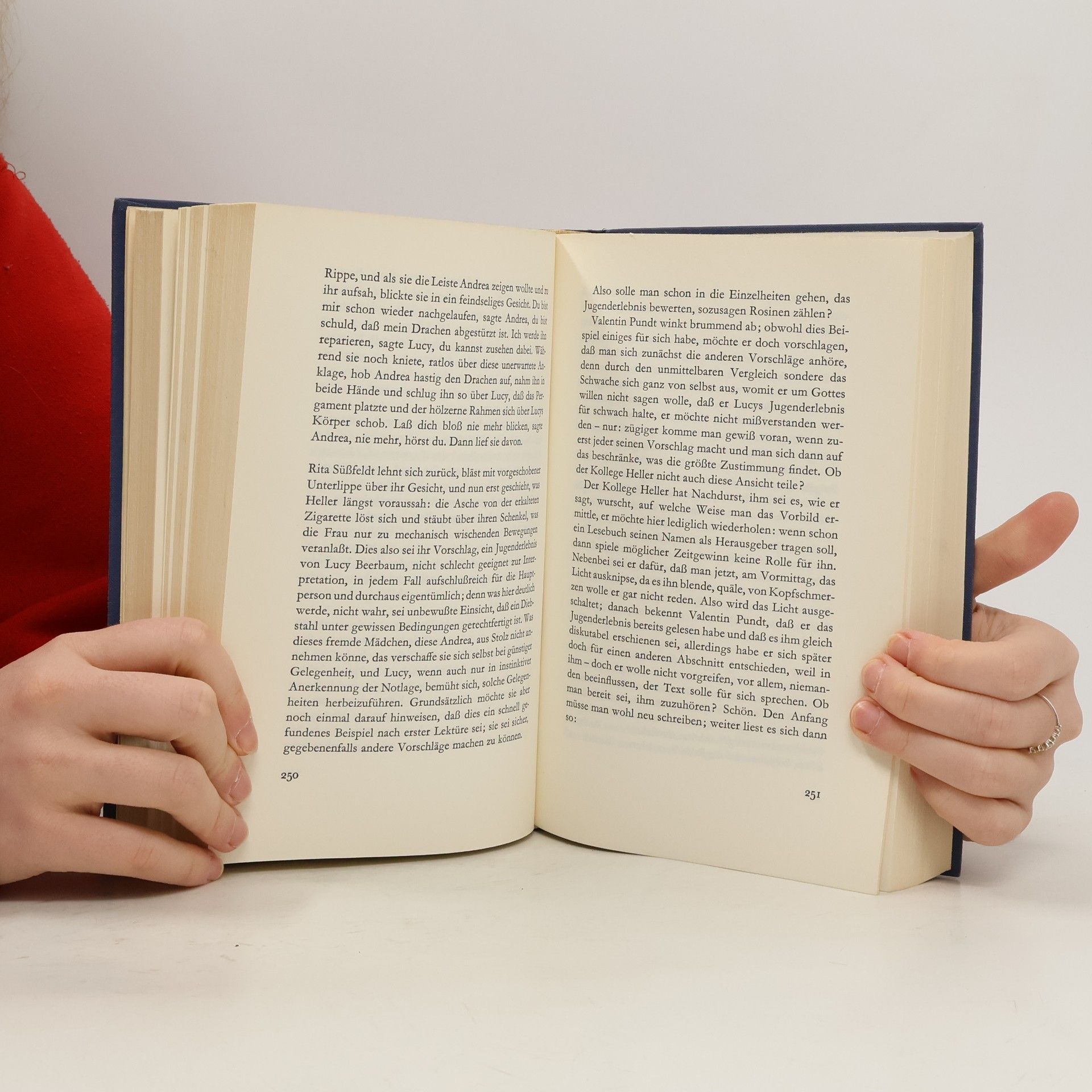 Drei Pädagogen - ein pensionierter Rektor, eine intellektuelle Lektorin und ein fortschrittlicher Studienrat - treffen sich in Hamburg, um im Auftrag eines Arbeitskreises der Kultusministerkonferenz für die Bundesrepublik ein neues repräsentatives Lesebuch zusammenzustellen. Uber die beiden ersten Teile können sie sich mühelos einigen. Das dritte Kapitel, Lebensbilder-Vorbilder, bringt jedoch unerwartete und kaum zu bewältigende Schwierigkeiten mit sich. Auf unsicherem Boden treten die drei Kollegen vor und zurück, richtend, wertend und urteilend. Zu dem Dilemma ihrer anfechtbaren Vorbilder kommen ihre eigenen Probleme. Schon sieht es so aus, als könnte man bei der Suche nach dem Vorbild zu keiner Einigung gelangen, da wird ein Name in die Debatte geworfen: Lucy Beerbaum, eine berühmte Biologin - allerdings nicht unumstritten, denn sie setzte ihrem Leben ein vorzeitiges Ende. Die kaum lösbare Aufgabe scheint gelöst - da verweigert der Verleger die Annahme. Was sollen junge Leute mit einem Vorbild, das ausschließlich leidet, mitleidet? Ein Fiasko also am Ende: alle geben auf. Der Leser darf weiterdenken über ein Buch, das viel Exemplarisches unserer Zeit vereint.
