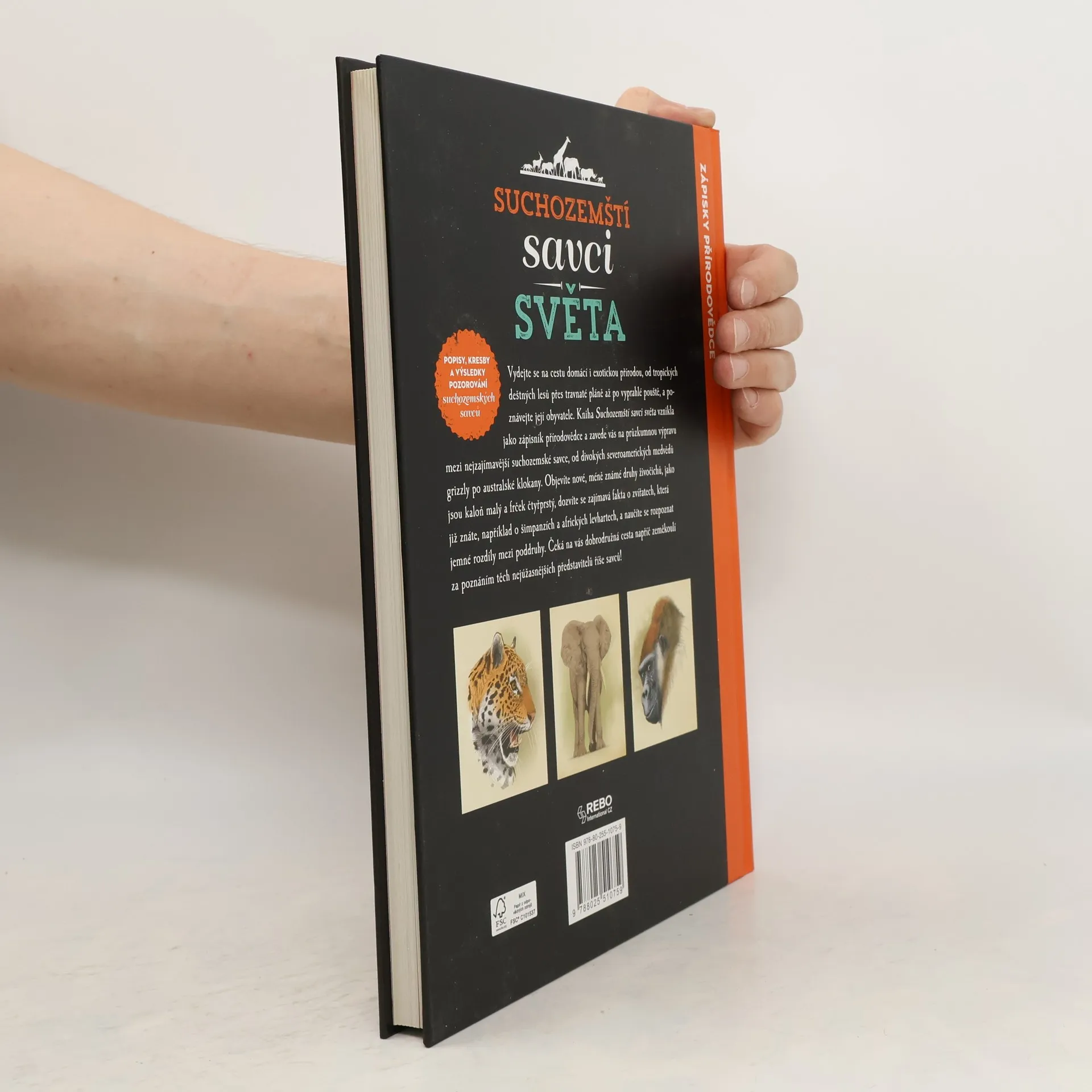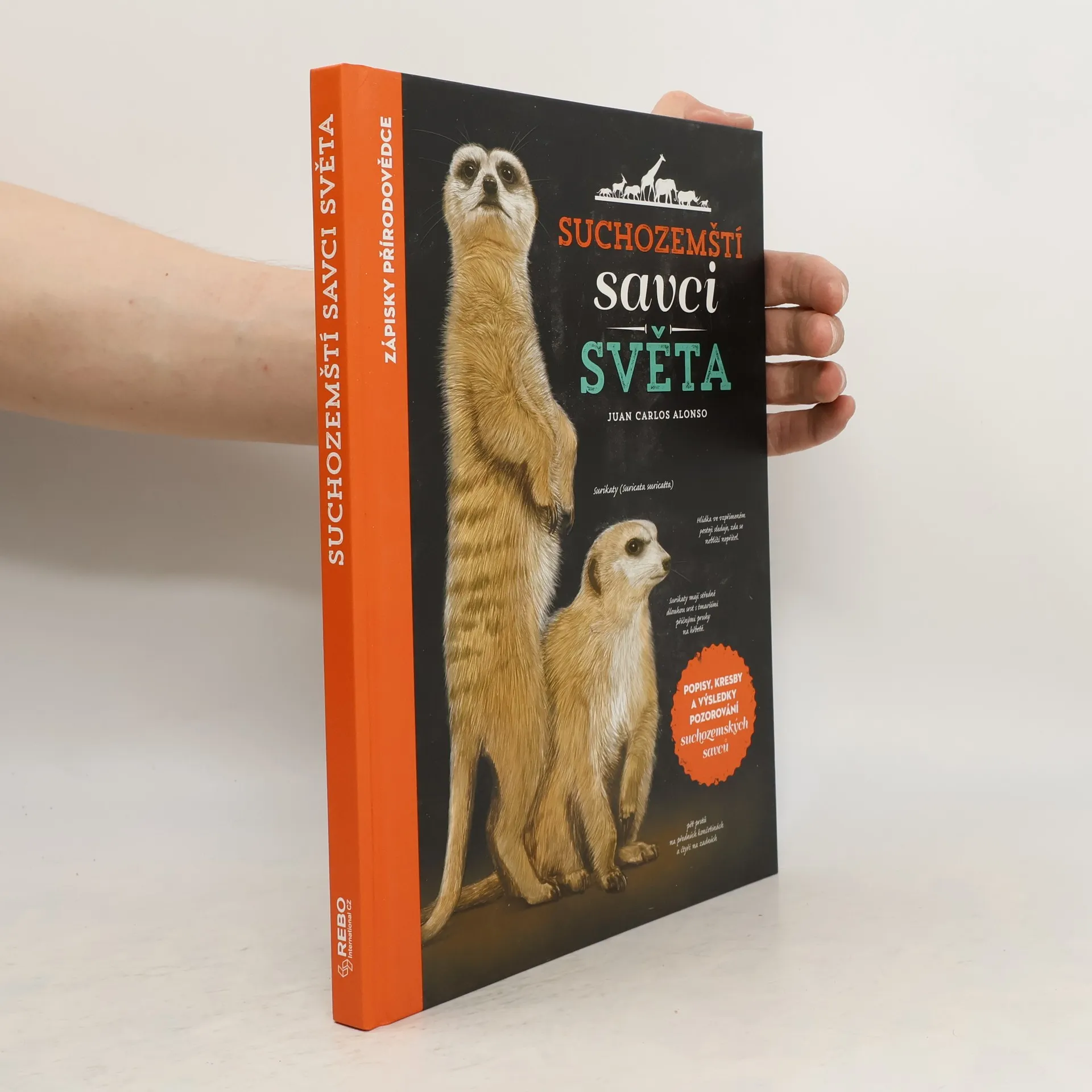 Kniha vznikla jako zápisky z cest amerického autora a ilustrátora Juana Carlose Alonsa, který na svých výpravách kolem světa studoval život zvířat. Výsledek těchto studií, titul Suchozemští savci světa, obsahuje nejen podrobné popisy nejzajímavějších suchozemských savců, ale také nádherné kresby jednotlivých zvířat vytvořené samotným autorem. Čtenář se dozví detailní údaje o způsobu života, stravě, velikosti, hmotnosti či stupni ohrožení známých i méně známých savců. Přehledné popisky ke všem kresbám čtenáři představí zajímavosti týkající se tělesné stavby zvířat.