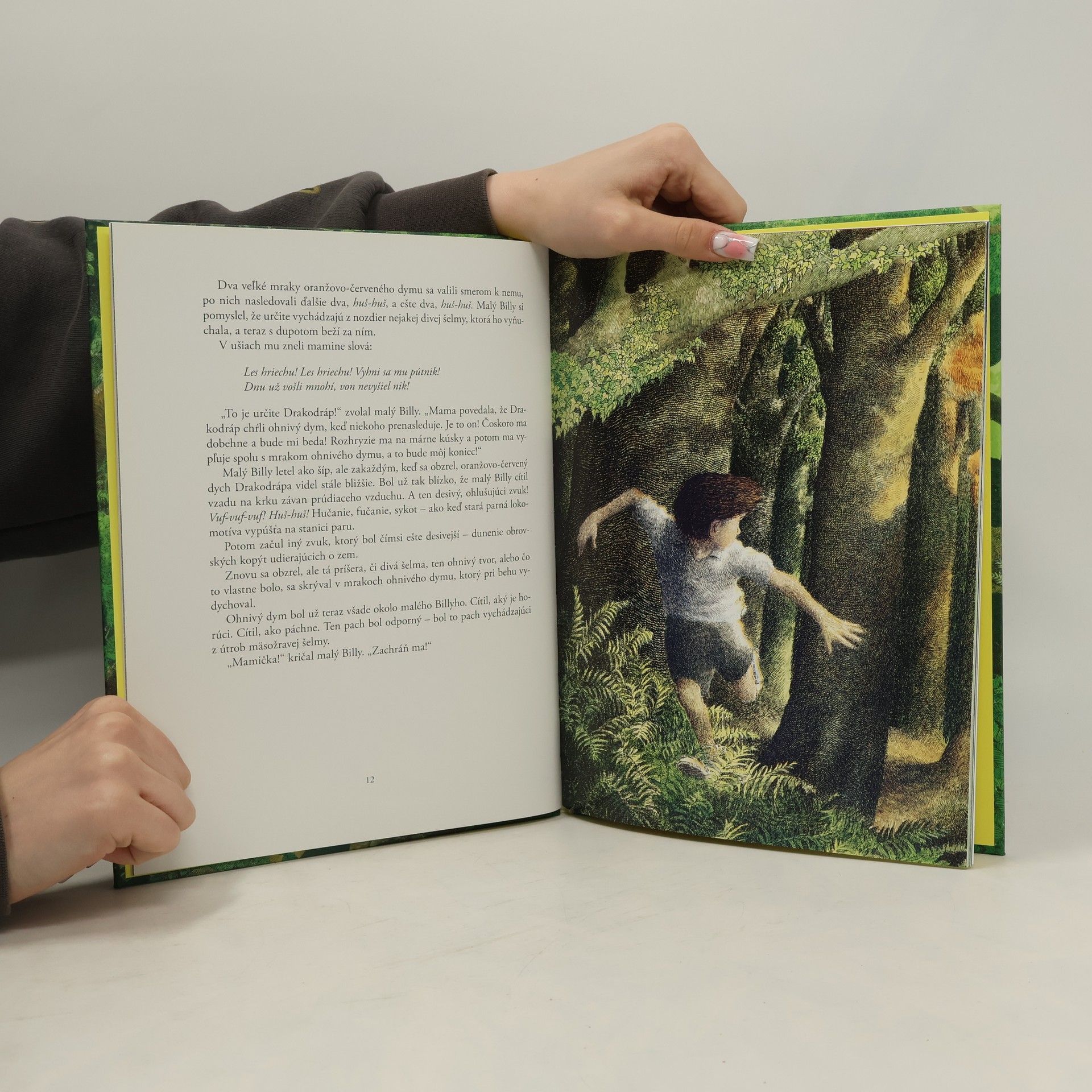 Krásne ilustrovaný príbeh o maličkých ľudských bytostiach, ktoré žijú vo svojich útulných obydliach v korunách starých stromov a vozia sa z miesta na miesto na krídlach vtáčikov. Zísť dolu na zem je pre nich nebezpečné, lebo v lese číha strašný netvor, chrliaci oheň. Malý Billy - zvedavý, a tak trochu neposlušný chlapec - zbaví les netvora, a dostane od minpinkov takú odmenu, akú nedostalo ešte žiadne dieťa na svete. Hoci ide takmer o klasickú čarovnú rozprávku, je plná dahlovských nápadov.