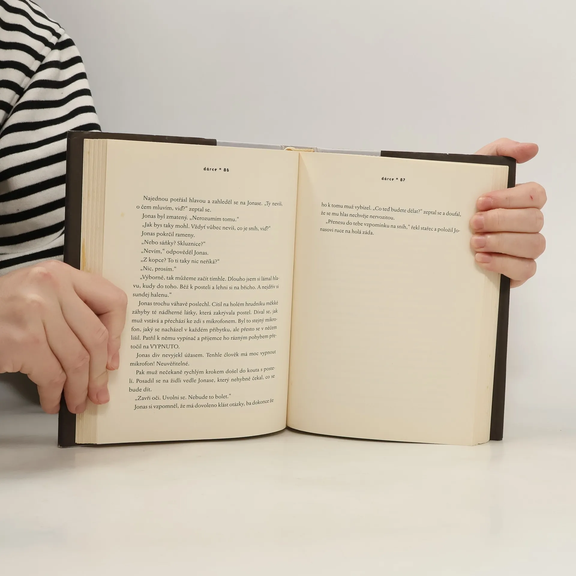 Dvanáctiletý Jonas žije ve světě, v němž neexistují války, zločiny, strach ani bolest. Všechno je dokonale organizované, nikdo si kvůli ničemu nemusí dělat starosti, dokonce i povolání dostane každý přiděleno. Jonas se má stát „příjemcem paměti", uctívaným strážcem vzpomínek. Podrobuje se výcviku, při němž mu dosavadní příjemce paměti předává to, co nikdo jiný nesmí vědět ani cítit – vzpomínky a zkušenosti předchozích generací, dozvídá se o bolesti a utrpení, ale i o kráse, lásce a přátelství a začíná chápat, že jeho společenství žije v dostatku a bezpečí za cenu totální absence citů a možnosti volby. A s tímhle vědomím, s poznáním těchto hodnot už nedokáže žít jako dřív…