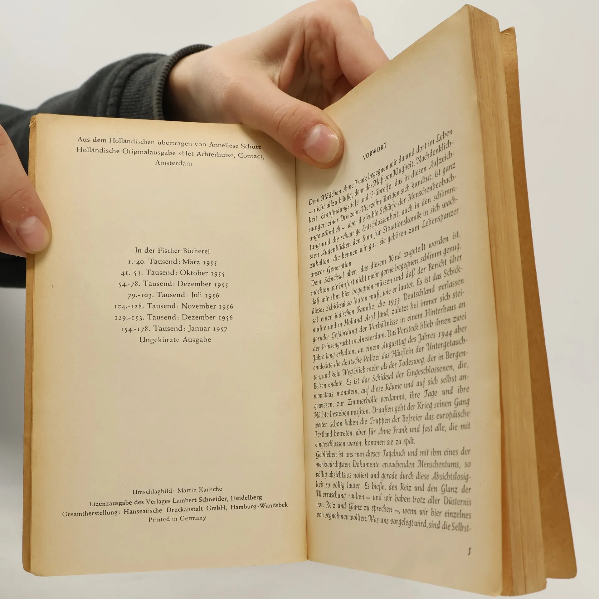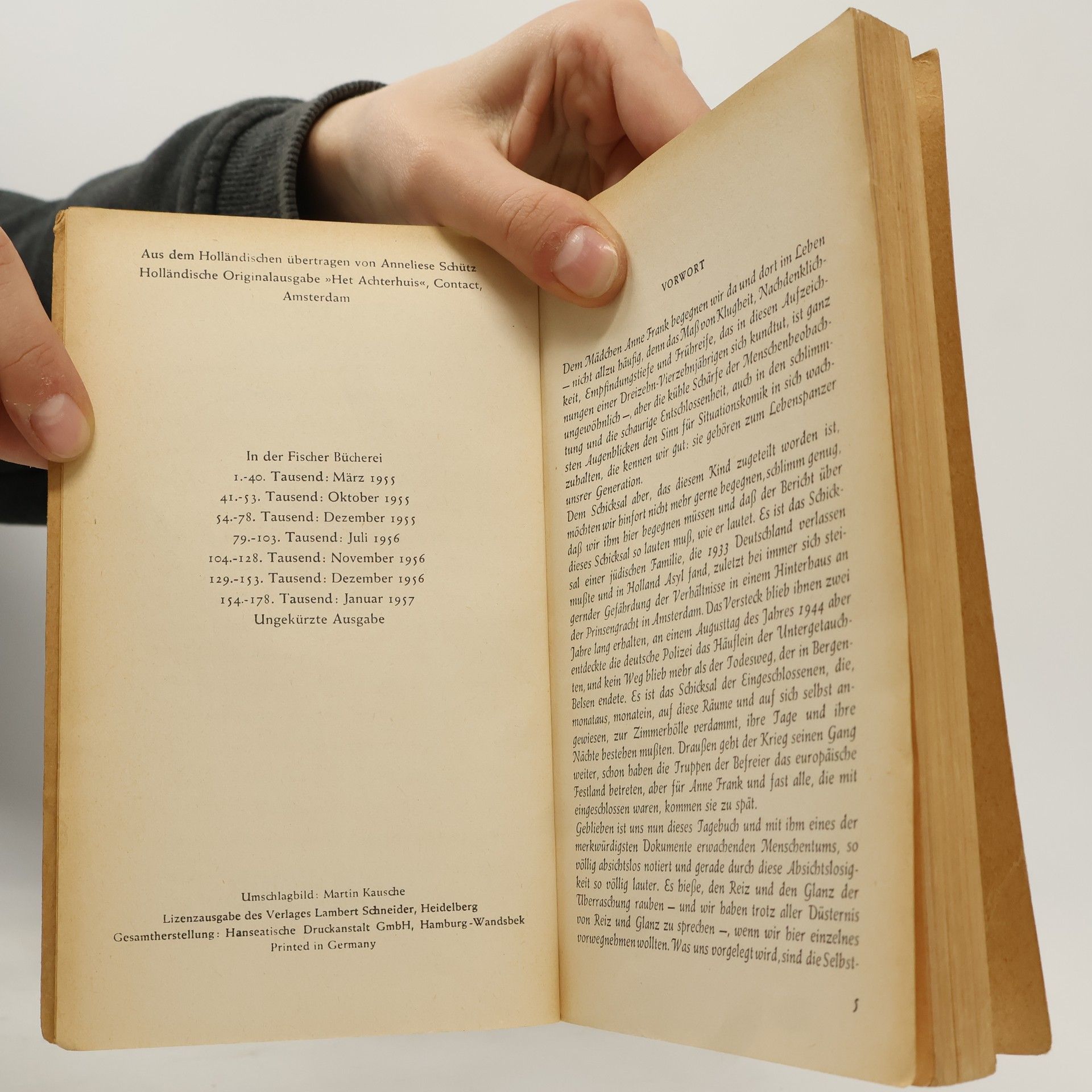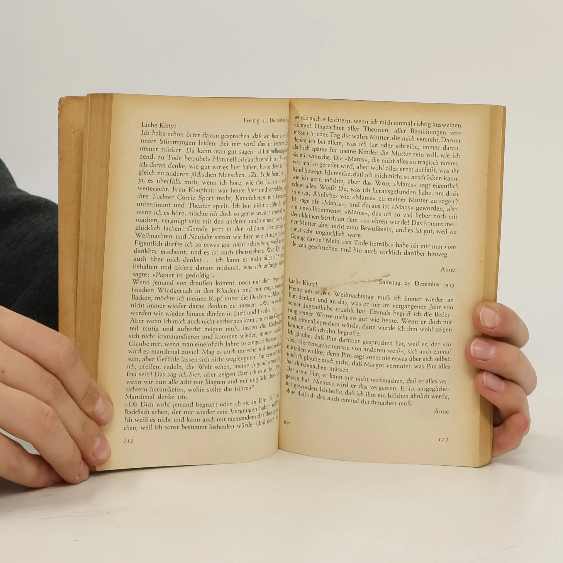 Die weltweit gültige und verbindliche Fassung des Tagebuchs von Anne Frank, autorisiert vom Anne Frank Fonds Basel, vereint Symbolik und Dokumentation. Es steht für den Völkermord an den Juden durch die Nazis und dokumentiert das Leben einer talentierten jungen Schriftstellerin. Diese Ausgabe ist die einzige autorisierte Fassung, die Annes überarbeitete Texte enthält, ohne die von ihrem Vater Otto Frank vorgenommenen Auslassungen. Mirjam Pressler hat eine neue, dem Stil des Originals entsprechende Übersetzung erarbeitet. Der vollständige Text vermittelt ein eindrucksvolles Bild von Annes Gefühls- und Gedankenwelt sowie ihren Fortschritten als Schriftstellerin. Anne Frank fragte sich: „Werde ich jemals Journalistin und Schriftstellerin werden? Ich hoffe es, ich hoffe es so sehr!“ Anne hinterließ zwei fragmentarische Tagebuchversionen: Version a ist der ursprüngliche Text, während Version b ihre unvollendete Bearbeitung darstellt, die 1986 veröffentlicht wurde. Version c war die erste Fassung, die Otto Frank 1947 veröffentlichte, wobei er sensible Stellen entfernte. Diese Version ist seit 1990 nicht mehr erhältlich. Version d, die vom Anne Frank Fonds autorisierte Leseausgabe, vereint die ungekürzten Texte der Versionen a und b und ist seit 1991 die verbindliche Grundlage für Übersetzungen in über 80 Sprachen. Alle Versionen, außer Version c, sind in verschiedenen Ausgaben von Mirjam Pressler im S. Fischer Verlag erhältlich.