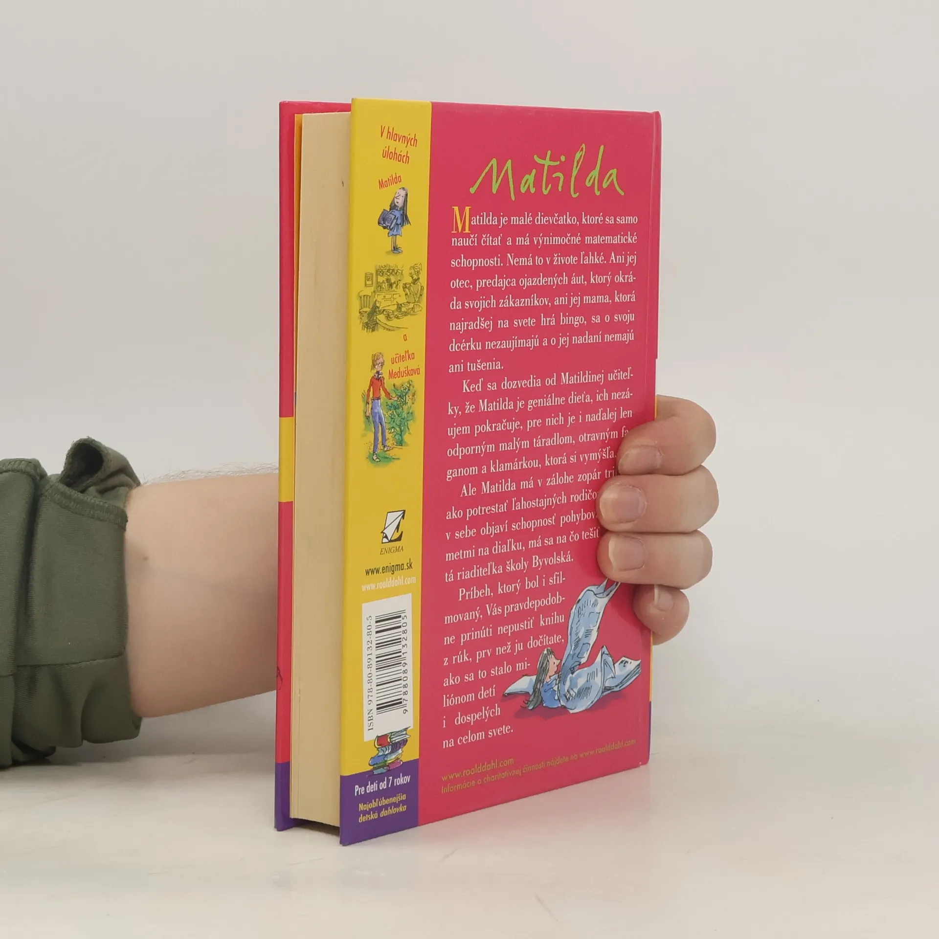 Príbeh malého, výnimočne nadaného dievčatka, ktoré v sebe objaví schopnosť pohybovať predmetmi na diaľku Vás pravdepodobne prinúti - ako sa to stalo miliónom detí, ale i dospelých na celom svete - nepustiť knihu z rúk prv než ju dočítate. Vďaka deju plnému napätia, originálnych nápadov a svojrázneho, niekedy až čierneho humoru sa kniha stala ihneď po prvom vydaní v roku 1988 bestsellerom. K úspechu knihy prispievajú aj nenapodobiteľné ilustrácie jedného z najrenomovanejších britských ilustrátorov, Quentina Blaka, dlhoročného spolupracovníka R. Dahla. S potešením predkladáme túto knihu slovenským deťom, ale aj všetkým dospelým, ktorí si chcú v zhone všedného dňa pripomenúť zázračno detskej duše.