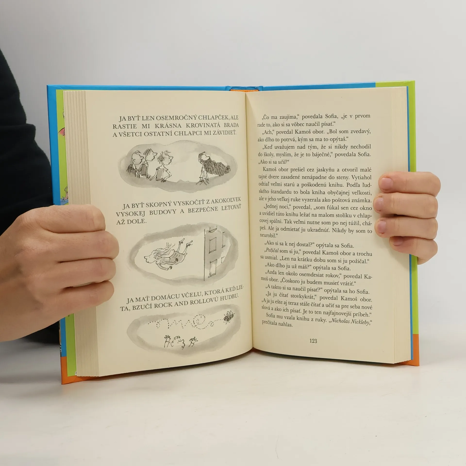 Môže malé dievčatko zvíťaziť nad hroznými, ozrutnými obrami - ľudožrútmi, ktorí šíria strach po celej krajine? Máte pravdu - nemôže. Iba ak ... iba ak by jej pomohol dobrý kamarát, rovnako veľký ako oni - Kamoš obor. A nemyslite si, že malá Sophia prežíva v príbehu iba strach a napätie. Kamoš obor je totiž veľmi zábavný spoločník a Sophiu i vás často rozosmeje. No a pretože má rád deti, určite sa stane aj vaším kamarátom. V knihe sa stretnete dokonca aj s anglickou kráľovnou.