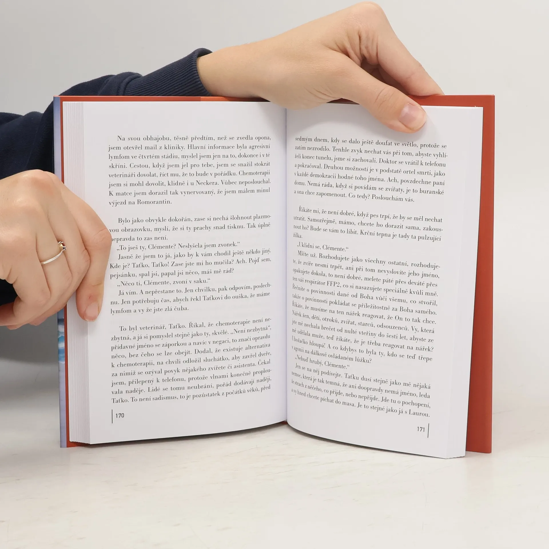 Román úspěšné francouzské autorky, nominantky několika literárních cen, je zdrcujícím pohledem na vztahy dvou zcela odlišných lidí, které jsou determinovány rodinnými a společenskými poměry. Padesátiletý Clément je úspěšný bankéř, žijící s pocitem nemilovaného dítěte. Jediný, koho má opravdu rád a pro koho je ochoten se obětovat, je jeho pes. Aby popudil svou matku, říká mu Taťka. Čtyřicetiletá Laura - spořádaná profesorka, manželka a matka, která dělá věci tak, jak se má. Ve skutečnosti ale touží po velkých citech. Oba žijí v jakési ulitě kompromisu a pohodlnosti. V kulisách současného rozjitřeného a nepředvídatelného světa rozehrají sebevražednou hru neukojené vášně, nenaplněné touhy, frustrace a mezigeneračního nepochopení.