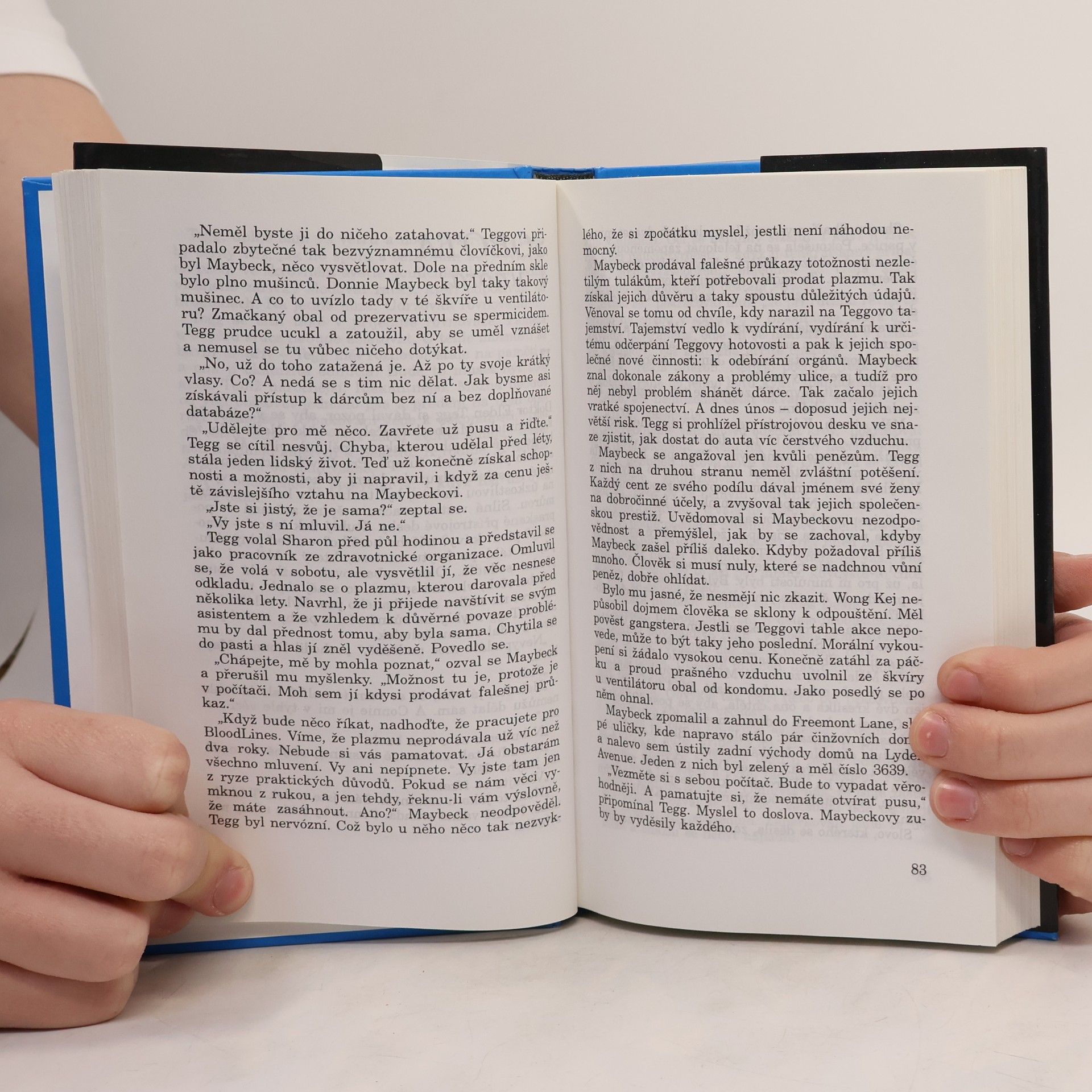 Když členka seatleského policejního sboru Daphne Matthewsová ..objeví nemocnou dívku a zjistí, že má odoperovanou jednu ledvinu a že po podobném zásahu zemřeli už tři lidé, tuší, že se octla na stopě závažného zločinu. Usilovně se snaží přijít na to, kdo je pachatelem brutálních vražd mladistvých tuláků, jejichž zmizení zdánlivě nevzbudí ničí pozornost. Její životu nebezpečné pátrání sice končí úspěchem, odhaluje však strašlivé praktiky jednoho z dnes nejnebezpečnějších obchodů - obchodu s lidskými orgány. Strhující thriller současného amerického autora připomíná svou atmosférou a brutální otevřenosti populární film Mlčení jehňátek.