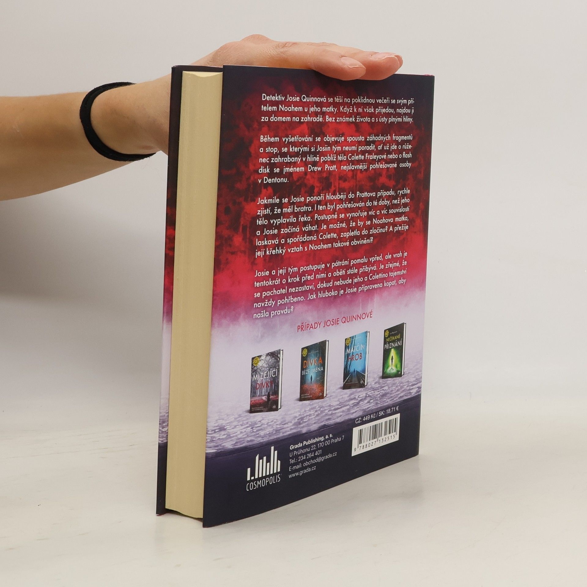 Detektiv Josie Quinnová se těší na poklidnou večeři se svým přítelem Noahem u jeho matky. Když k ní však přijedou, najdou ji za domem na zahradě. Bez známek života a s ústy plnými hlíny.Během vyšetřování se objevuje spousta záhadných fragmentů a stop, se kterými si Josiin tým neumí poradit, ať už jde o růženec zahrabaný v hlíně poblíž těla Colette Fraleyové nebo o flash disk se jménem Drew Pratt, nejslavnější pohřešované osoby v Dentonu.Jakmile se Josie ponoří hlouběji do Prattova případu, rychle zjistí, že měl bratra. I ten byl pohřešován do té doby, než jeho tělo vyplavila řeka. Postupně se vynořuje víc a víc souvislostí a Josie začíná váhat. Je možné, že by se Noahova matka, laskavá a spořádaná Colette, zapletla do zločinu? A přežije její křehký vztah s Noahem takové obvinění?Josie a její tým postupuje v pátrání pomalu vpřed, ale vrah je tentokrát o krok před nimi a obětí stále přibývá. Je zřejmé, že se pachatel nezastaví, dokud nebude jeho a Colettino tajemství navždy pohřbeno. Jak hluboko je Josie připravena kopat, aby našla pravdu?
