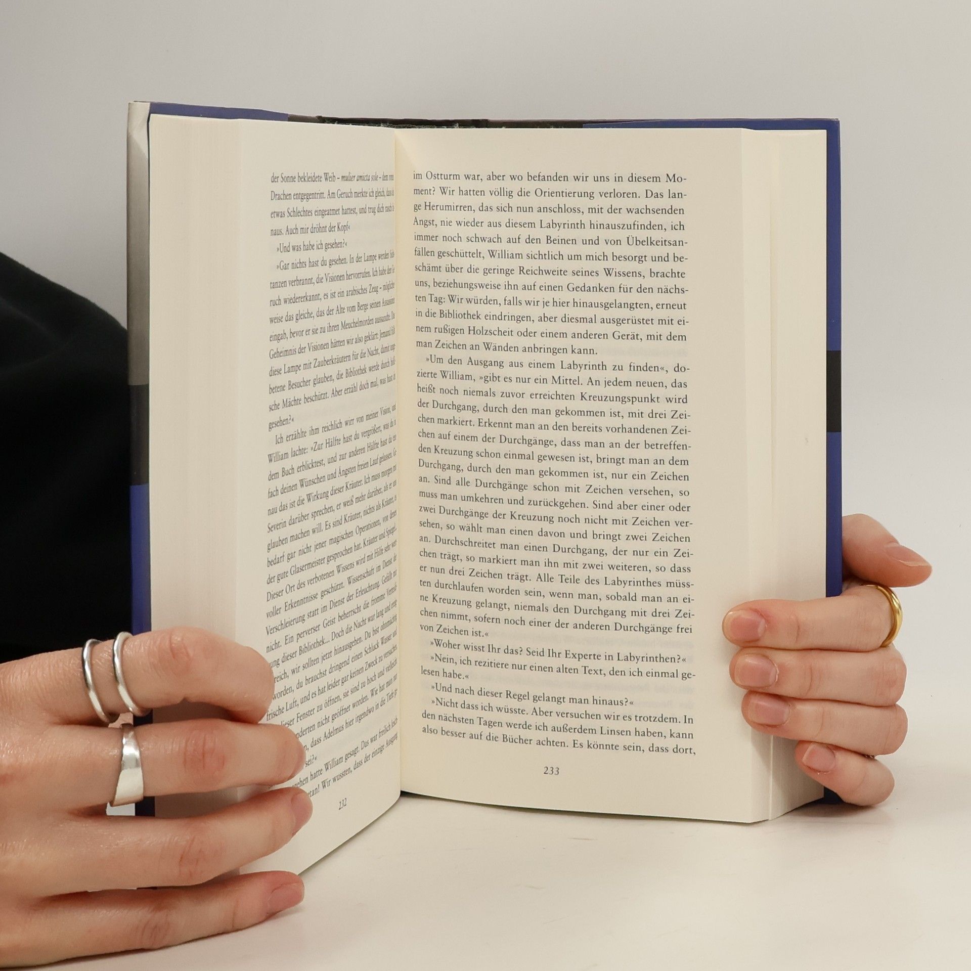 Daß er in den Mauern der prächtigen Benediktinerabtei an den Hängen des Apennin das Echo eines verschollenen Lachens hören würde, das hell und klassisch herüberklingt aus der Antike, damit hat der englische Franziskanermönch William von Baskerville nicht gerechnet. Zusammen mit Adson von Melk, seinem etwas tumben, jugendlichen Adlatus, ist er in einer höchst delikaten politischen Mission unterwegs. Doch in den sieben Tagen ihres Aufenthalts werden die beiden mit kriminellen Ereignissen und drastischen Versuchungen konfrontiert: Ein Mönch ist im Schweineblutbottich ertrunken, ein anderer aus dem Fenster gesprungen, ein dritter wird tot im Badehaus gefunden. Aber nicht umsonst stand William lange Jahre im Dienste der heiligen Inquisition. Das Untersuchungsfieber packt ihn. Er sammelt Indizien, entziffert magische Zeichen, entschlüsselt Manuskripte und dringt immer tiefer in ein geheimnisvolles Labyrinth vor, über das der blinde Seher Jorge von Burgos wacht