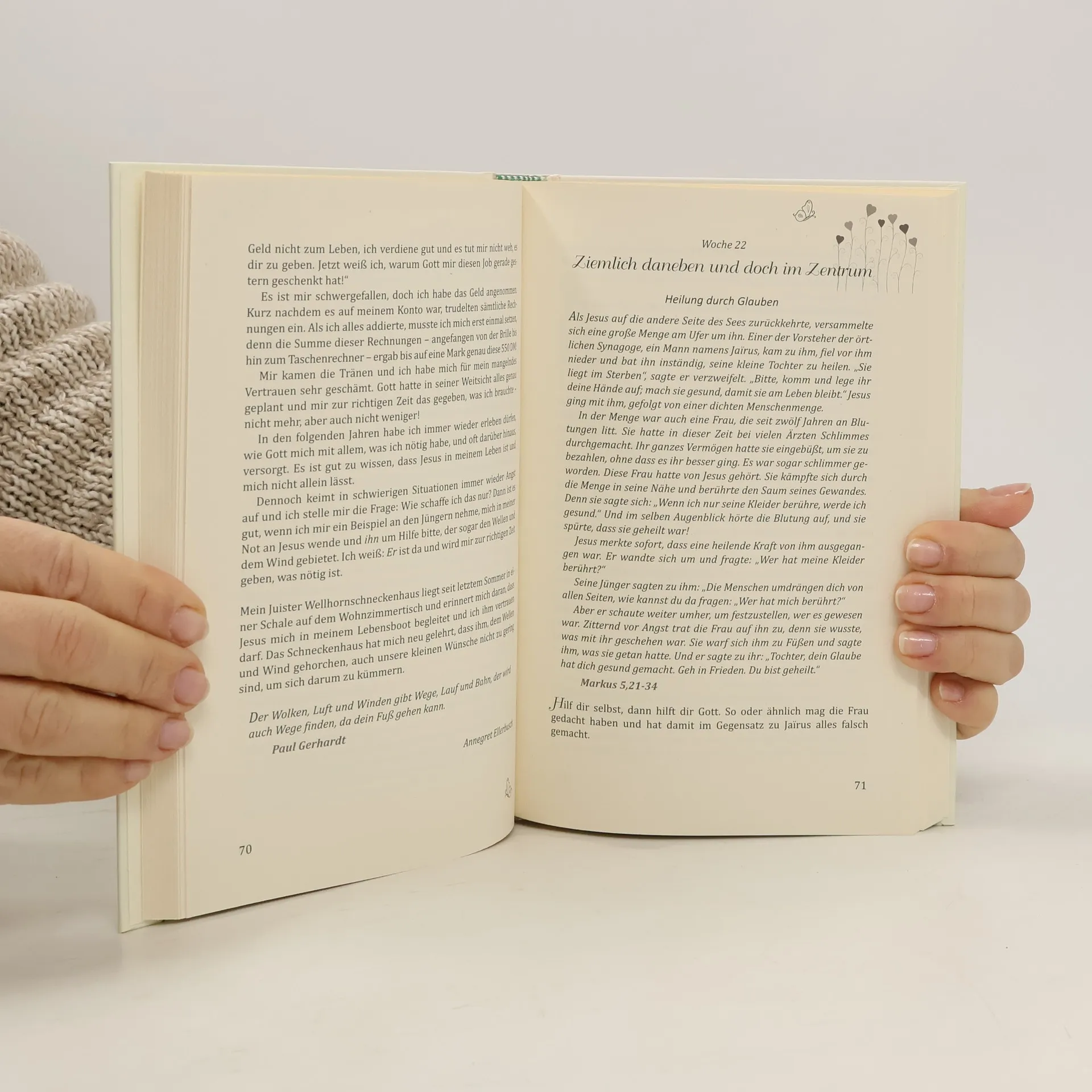 Ein Andachtsbuch für jede Woche des Jahres. 52 Frauen betrachten je einen Abschnitt aus den Evangelien. Sie beleuchten den zugrundeliegenden Bibeltext (Übersetzung Neues Leben) und übertragen ihn auf ihren Lebensalltag - mit vielen persönlichen Beispielen und praktischen Anregungen. Dabei sind die Texte so unterschiedlich wie ihre Autorinnen - bewegend und nachdenklich, unterhaltsam und lustig. So kann frau sich während eines ganzen Jahres von der Person Jesu inspirieren lassen! Mit Texten u. a. von Doro Zachmann, Elisabeth Büchle, Nina Dulleck, Heike Malisic.