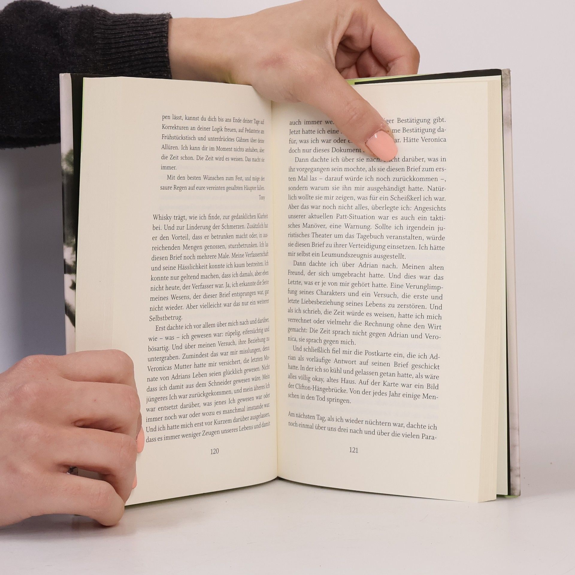 Man Booker Prize 2011 für »Vom Ende einer Geschichte« Wie sicher ist Erinnerung, wie unveränderlich die eigene Vergangenheit? Tony Webster muss lernen, dass Geschehnisse, die lange zurückliegen und von denen er glaubte, sie nie mehr hinterfragen zu müssen, plötzlich in einem ganz neuen Licht erscheinen. Als Finn Adrian in die Klasse von Tony Webster kommt, schließen die beiden Jungen schnell Freundschaft. Sex und Bücher sind die Hauptthemen, mit denen sie sich befassen, und Tony hat das Gefühl, dass Adrian in allem etwas klüger ist als er. Auch später, nach der Schulzeit, bleiben die beiden in Kontakt. Bis die Freundschaft ein jähes Ende findet. Vierzig Jahre später, Tony hat eine Ehe, eine gütliche Trennung und eine Berufskarriere hinter sich, ist er mit sich im Reinen. Doch der Brief eines Anwalts, verbunden mit einer Erbschaft, erweckte plötzlich Zweifel an den vermeintlich sicheren Tatsachen der eigenen Biographie. Je mehr Tony erfährt, desto unsicherer scheint das Erlebte und desto unabsehbarer die Konsequenzen für seine Zukunft. Ein Text mit unglaublichen Wendungen, der den Leser auf eine atemlose Achterbahnfahrt der Spekulationen mitnimmt. »Wie Barnes allmählich die Selbstzensur in den Erinnerungen seines pensionierten Protagonisten Tony Webster bloßlegt, beweist seine ganze Meisterschaft.« (Süddeutsche Zeitung)