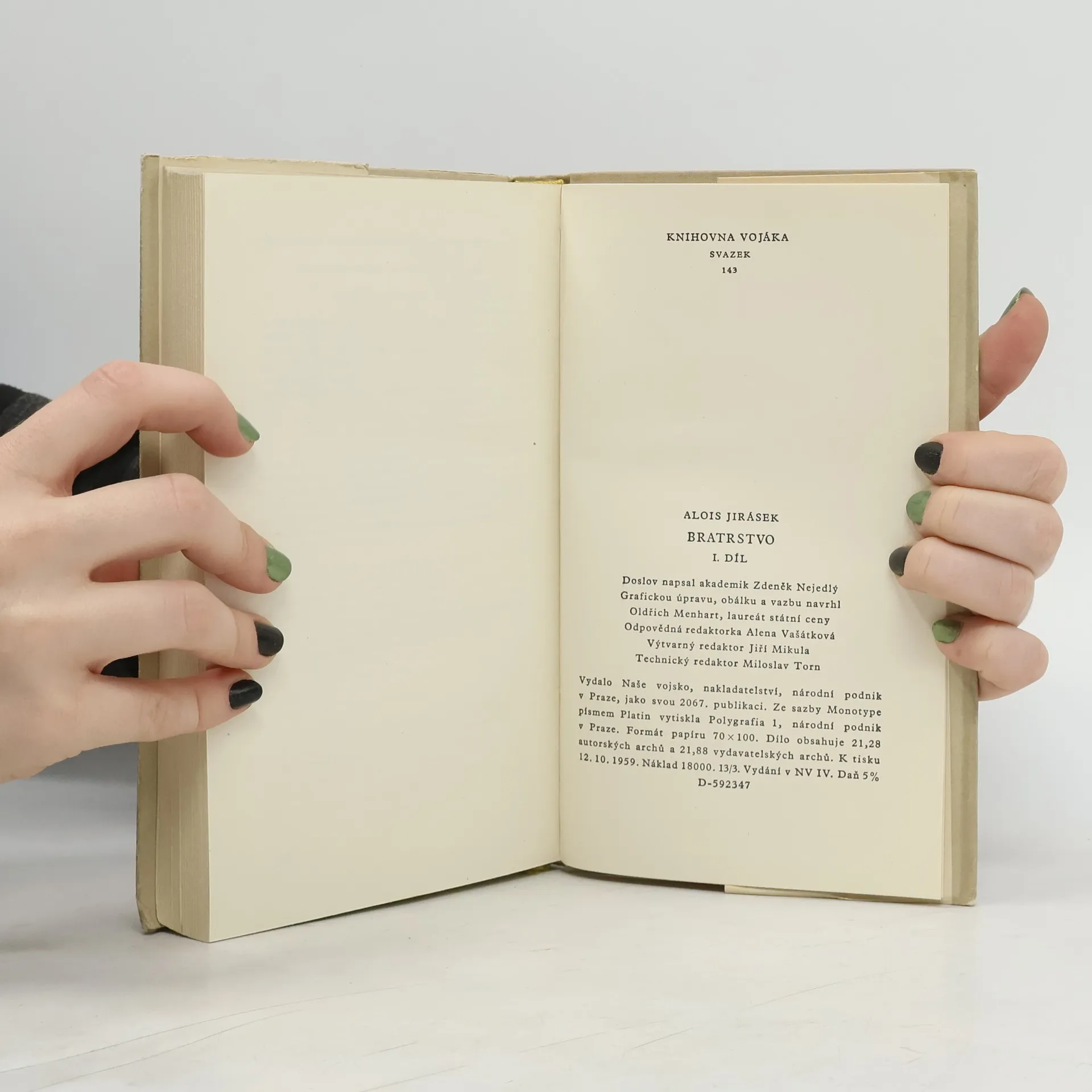 První vydání v tomto nakladatelství. *** Po trilogii "Mezi proudy", líčící vznik a počátky husitství, a po "Proti všem", podávajících vrchol síly a slávy husitství, vzniká "Bratrstvo" jako třetí část Jiráskovy velké husitské epopeje. Ve 3 "rapsodiích" jsou vylíčeny osudy bratrskýchvojsk na Slovensku (1450-1467) pod vedením Jana Jiskry z Brandýsa. 1. díl, zahrnující rok 1450-1451, je věnován nejslavnější době bratříků. Líčí vítěznou bitvu u Lučence, v níž české roty porazily daleko početnější vojsko Hunyadyho, a vpád bratříků vedených Janem Poberou z Lomu až k Pešti, kam nepronikl ani Žižka na svém tažení r. 1423. Bratříci opanovali celé Slovensko a stali se tak mocí, s níž musil počítat i nepřítel. Na ovládnutém území vybudovali zcela nový, jakoby státní útvar, jenž vedle moci krále Ladislava a moci Hunyadovců znamenal třetí samostatnou sílu na území tehdejších Uher. Jirásek líčí, jak husitský demokratismus posílil národnostní uvědomění a sebevědomí zejména slovenského zemanstva, ale i sloven. lidu. Tak je Bratrstvo kapitolou z dějin Slovenska, nově pojatou pod zorným úhlem osvobozovacího významu husitské revoluce, sociálního i národnostního.