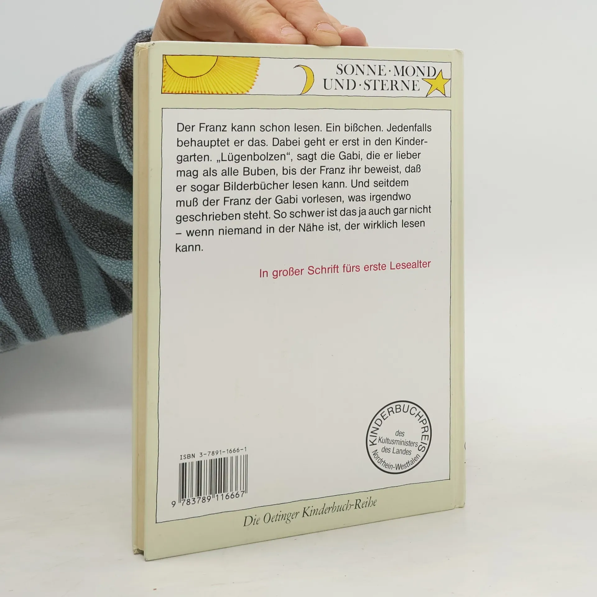Der Franz kann schon lesen. Ein bisschen. Jedenfalls behauptet er das. „Lügenbolzen“, sagt die Gabi, die er lieber mag als alle Buben. Bis der Franz ihr beweist, dass er sogar Bilderbücher lesen kann. Und seitdem muss der Franz der Gabi alles vorlesen, was irgendwo geschrieben steht. So schwer ist das ja auch gar nicht - wenn niemand in der Nähe ist, der wirklich lesen kann! Lustig, frech und typisch Franz! Die absolute Long- und Bestsellerserie für Erstleser. Lesen lernen mit „Büchersterne“ für die 2./3. Klasse: einfacher Satzbau, fortgeschrittenes Textniveau und ein höherer Textanteil, der die Lesefähigkeit geübter Leseanfänger fördert. Dazu ein Leserätsel im Anhang.