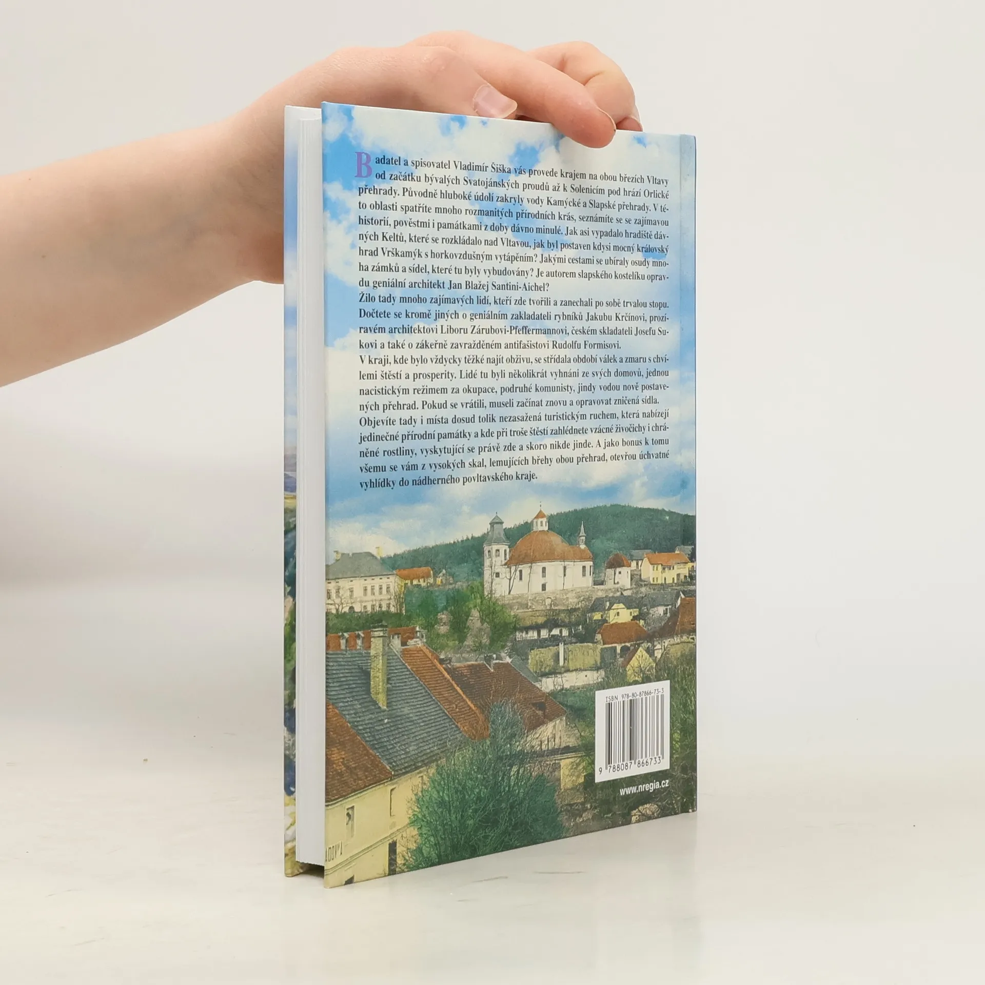Vladimír Šiška, badatel a spisovatel, vás provede malebným krajem podél Vltavy, od bývalých Svatojánských proudů až po Solenice pod Orlickou přehradou. Tato oblast, kdysi hluboké údolí, je nyní zakryta vodami Kamýcké a Slapské přehrady a nabízí rozmanité přírodní krásy, fascinující historii, pověsti a památky. Dozvíte se, jak vypadalo keltské hradiště nad Vltavou a jak byl postaven královský hrad Vrškamýk s unikátním vytápěním. Příběhy mnoha zámků a sídel odhalují osudy jejich tvůrců, včetně geniálního architekta Jana Blažeje Santini-Aichela. Seznámíte se s osobnostmi jako Jakub Krčín, zakladatel rybníků, architekt Libor Záruba-Pfeffermann, skladatel Josef Suk a antifašista Rudolf Formis. Kraj, kde bylo vždy těžké najít obživu, zažil války a období prosperity, přičemž mnozí byli vyhnáni ze svých domovů. Ti, kteří se vrátili, museli obnovit zničená sídla. Objevíte také místa, která zůstala nedotčena turismem, s jedinečnými přírodními památkami a možností spatřit vzácné živočichy a rostliny. Z vysokých skal, které lemují břehy, se vám otevřou úchvatné výhledy na krásy povltavského kraje.