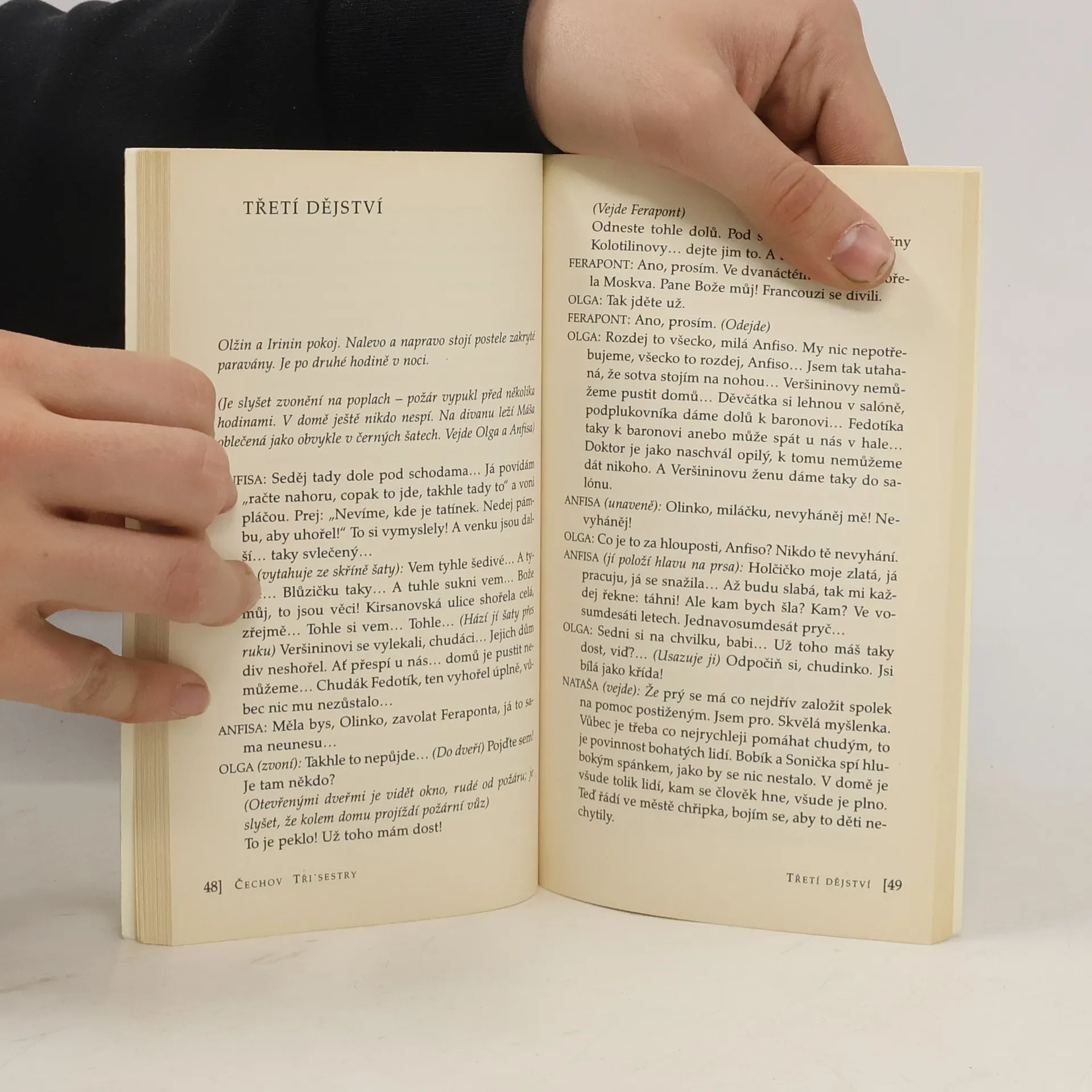 Drama o čtyřech dějstvích v překladu L. Suchařípy. Tři sestry jsou dramatem, v němž se tak „moc neděje“. Tři sestry Prozorovovy mají kdesi v provincionálním ruském městě dům, kde žijí se svým bratrem Andrejem a později i jeho rodinou. Chodí k nim na návštěvu vojáci, neboť jejich otec byl generálem a ony celý svůj život trávily v důstojnické společnosti. Vzpomínají na Moskvu, touží se do ní odstěhovat, protože tam byly šťastné. A život je stále více ubíjí, drtí, ničí...