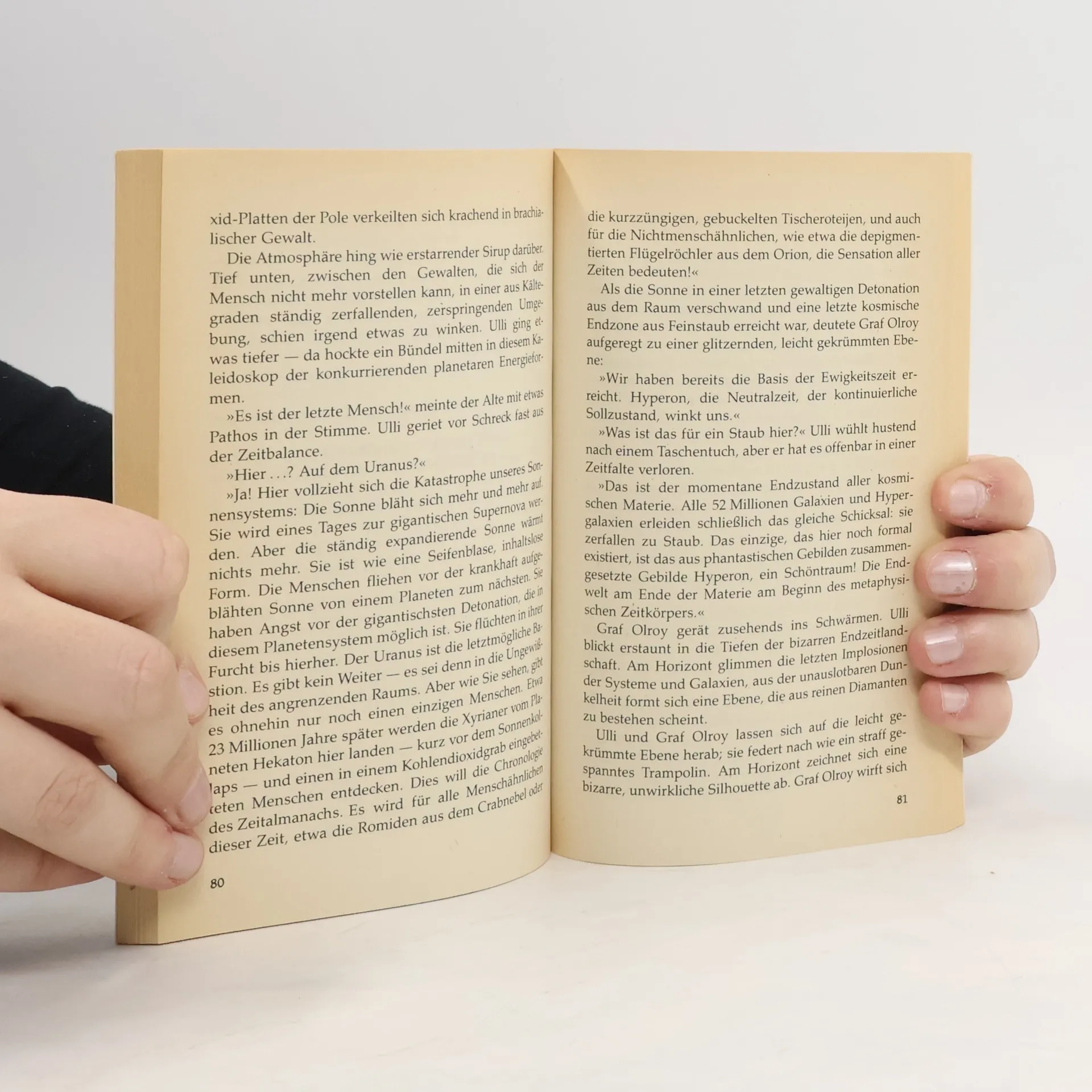Ulli Parker ist Beamter für allgemeine Aushängevorschriften. Eines Tages bemerkt er verblüfft, dass sich in seiner Umwelt merkwürdige Unregelmäßigkeiten im Zeitablauf ereignen: Während sich manche Geschehnisse verdoppeln, scheinen bei anderen Brüche zu entstehen und Lücken aufzutreten.Bei seiner Suche nach den Ursachen trifft Ulli den Zeitmann, einen Grafen Olroy, dessen Aufgabe es ist, Zeitfalten zu straffen, Zeitlöcher zu stopfen und - weil die Zeit immer mehr aus den Fugen gerät und stellenweise schon zu zerbröckeln droht - eine wachsende Zahl von Zeitpatienten von ihren temporalen Neurosen zu heilen, wobei ihm Albert Einstein als Zeittheoretiker und H. G. Wells als reisender Zeitmaschinist zur Seite stehen.