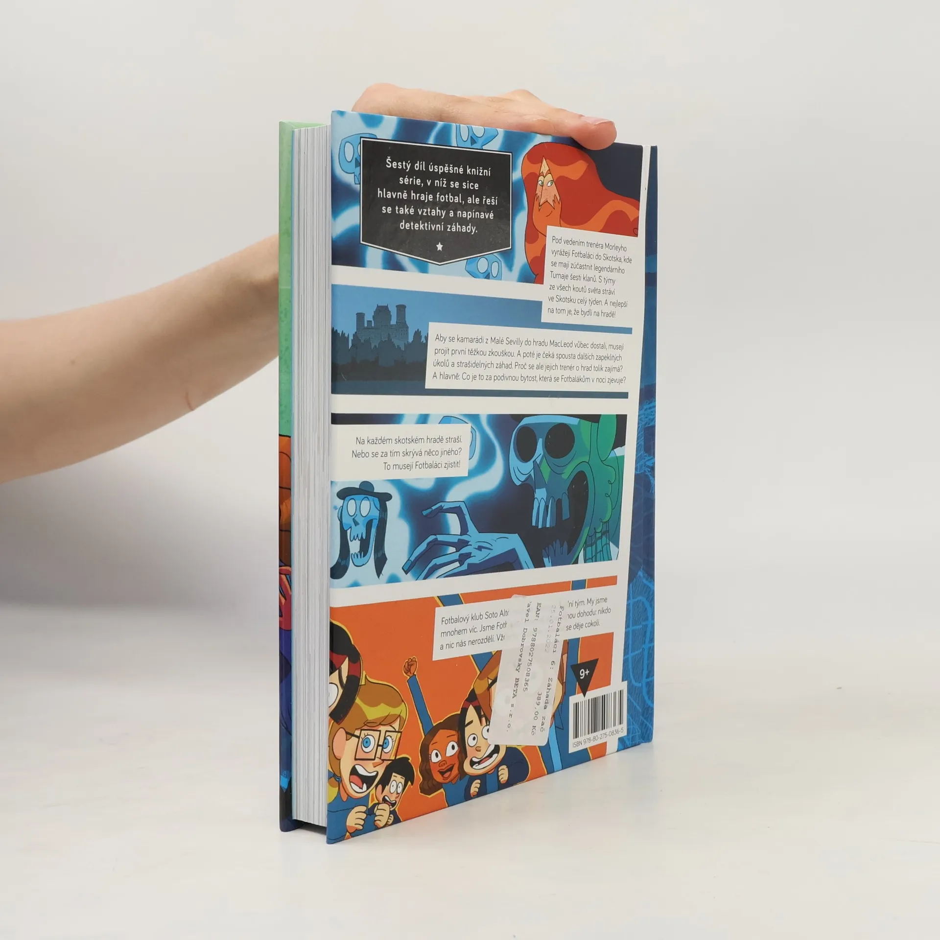 Na každém skotském hradě straší. Nebo je za tím něco jiného? To musí zjistit Fotbaláci! Fotbaláci jedou pod vedením svého trenéra Morleyho do Skotska, kde se mají zúčastnit legendárního Turnaje šesti klanů. Fotbaláci stráví ve Skotsku celý týden, s týmy z celého světa. A nejlepší na tom je, že budou spát na hradě! Budou ovšem muset projít několika těžkými zkouškami, aby se do hradu MacLeod vůbec dostali. Ale proč se jejich trenér o hrad tolik zajímá? A hlavně — co to je za podivnou bytost, která se Fotbalákům každou noc zjevuje? Šestý díl úspěšné série knih, v nichž se sice hlavně hraje fotbal, ale jde také o vztahy a napínavé detektivní záhady.