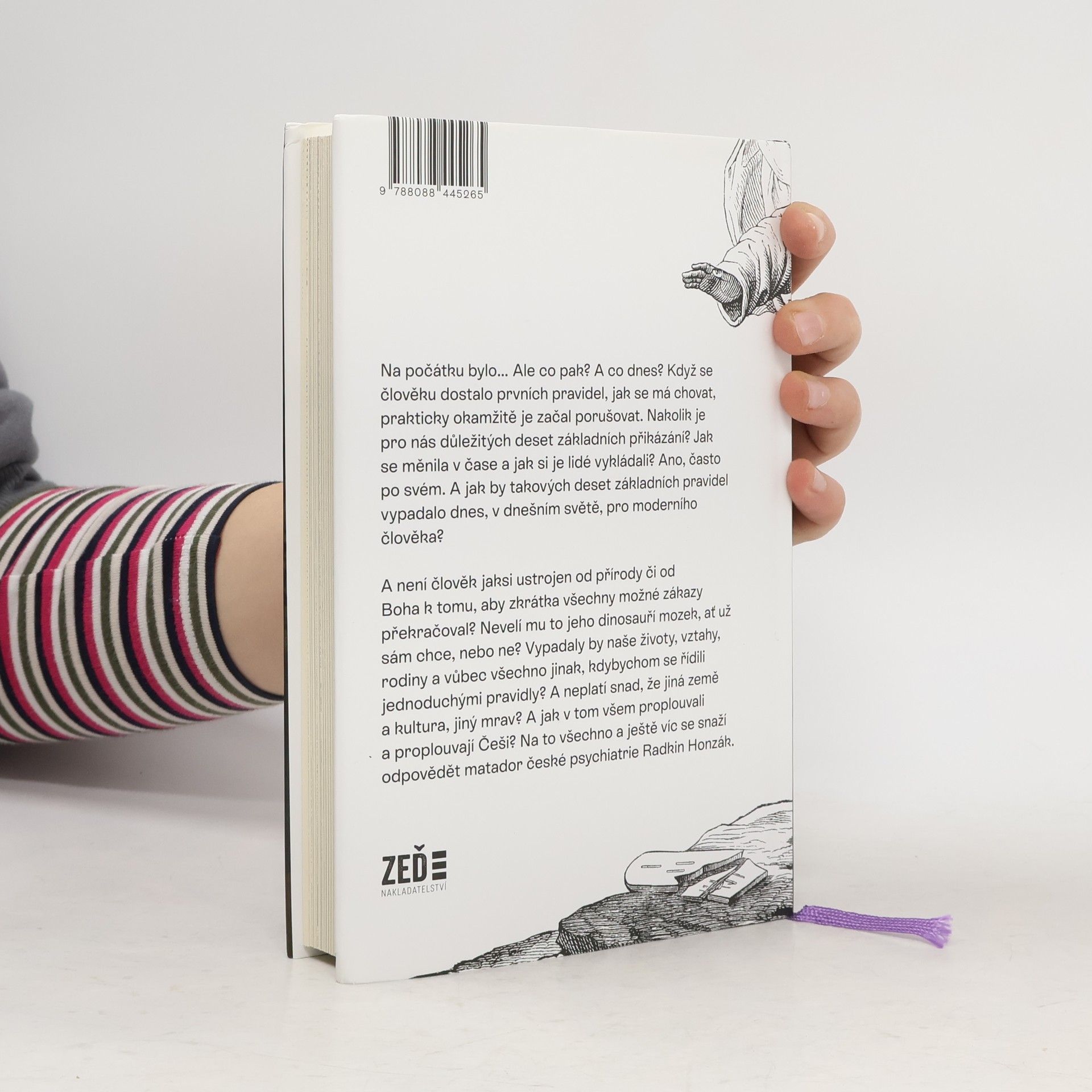 Na počátku bylo… Ale co pak? A co dnes? Když se člověku dostalo prvních pravidel, jak se má chovat, prakticky okamžitě je začal porušovat. Nakolik je pro nás důležitých deset základních přikázání? Jak se měnila v čase a jak si je lidé vykládali? Ano, často po svém. A jak by takových deset základních pravidel vypadalo dnes, v dnešním světě, pro moderního člověka? A není člověk jaksi ustrojen od přírody či od Boha k tomu, aby zkrátka všechny možné zákazy překračoval? Nevelí mu to jeho dinosauří mozek, ať už sám chce, nebo ne? Vypadaly by naše životy, vztahy, rodiny a vůbec všechno jinak, kdybychom se řídili jednoduchými pravidly? A neplatí snad, že jiná země a kultura, jiný mrav? A jak v tom všem proplouvali a proplouvají Češi? Na to všechno a ještě víc se snaží odpovědět matador české psychiatrie Radkin Honzák.
