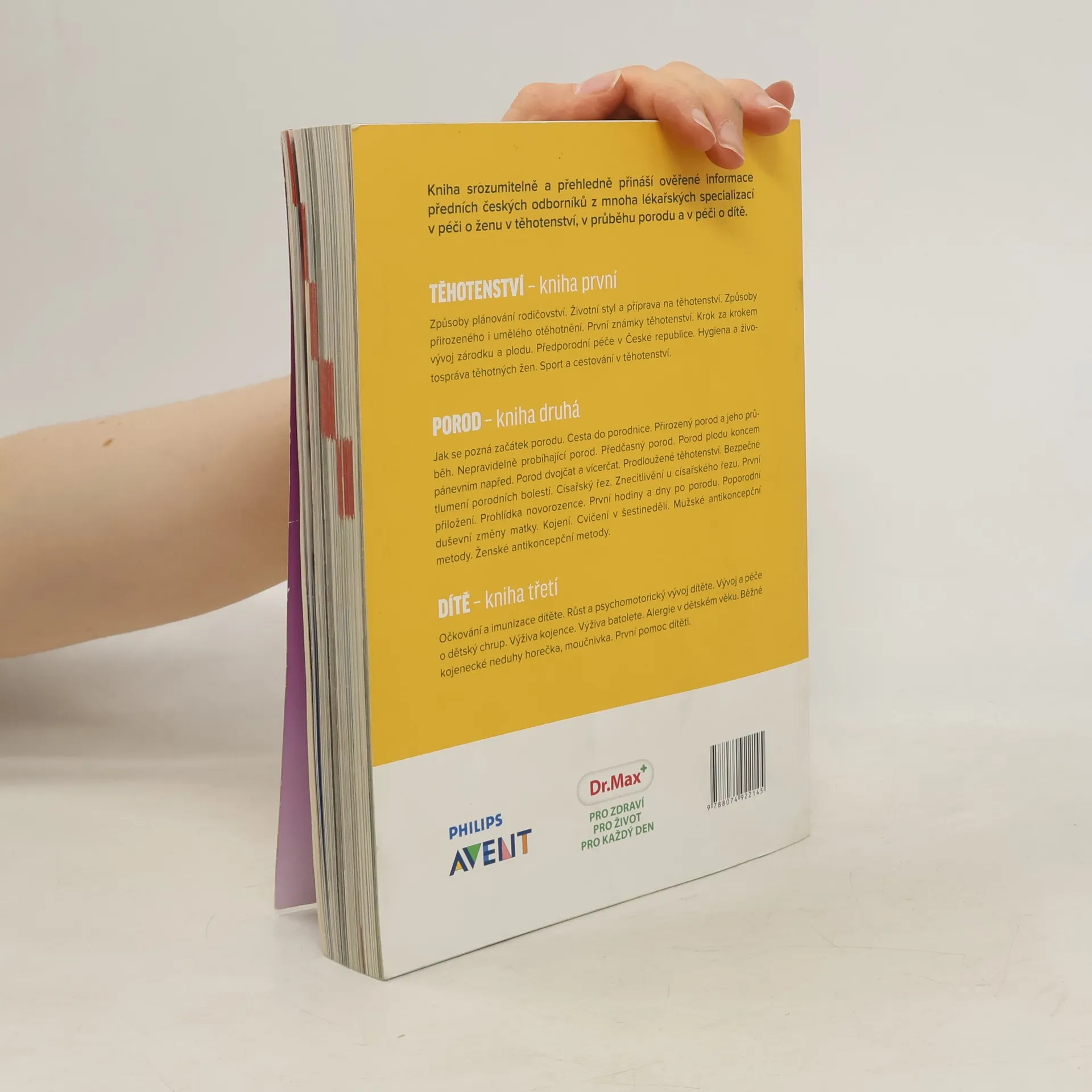 Kniha srozumitelně a přehledně přináší ověřené informace předních českých odborníků z mnoha lékařských oborů o těhotenství, porodu a péči o dítě. Způsoby plánovaného rodičovství. Životní styl a příprava na těhotenství. Způsoby přirozeného i umělého otěhotnění. První známky těhotenství. Vývoj zárodku a plodu krok za krokem. Předporodní péče v České republice. Hygiena a životospráva těhotných žen. Sport a cestování v těhotenství.