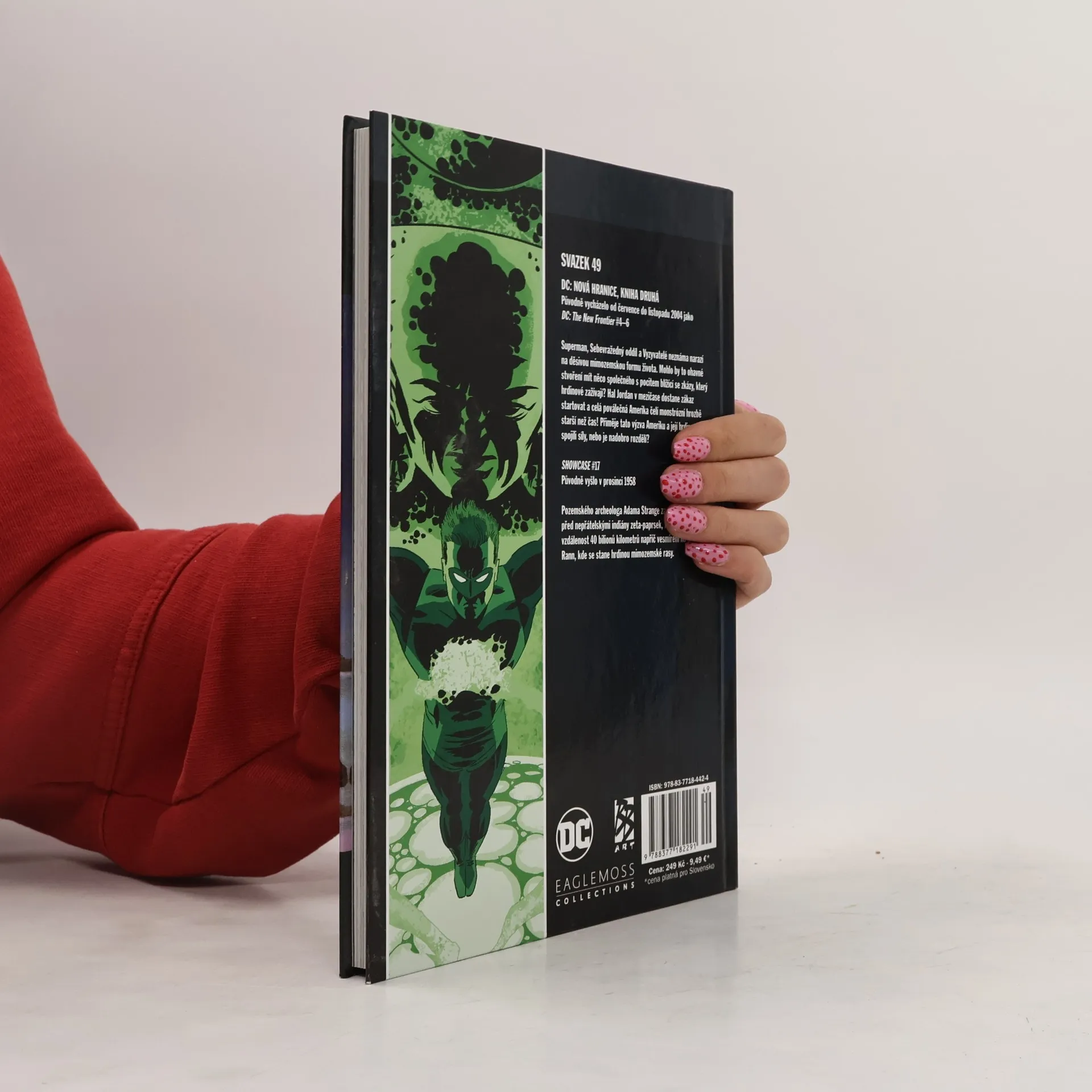 DC: NOVÁ HRANICE, KNIHA DRUHÁ Původně vycházelo od července do listopadu 2004 jako DC: The New Frontier #4-6 Superman, Sebevražedný oddíl a Vyzyvatelé neznáma narazí na děsivou mimozemskou formu života. Mohlo by to ohavné stvoření mít něco společného s pocitem blížící se zkázy, který hrdinové zažívají? Hal Jordan v mezičase dostane zákaz startovat a celá poválečná Amerika čelí mostrózní hrozbě starší než čas! Přiměje tato výzva Ameriku a její hrdiny, aby spojili síly, nebo je nadobro rozdělí? SHOWCASE #17 Původně vyšlo v prosinci 1958 Pozemského archeologa Adama Strange zasáhne na útěku před nepřátelskými indiány zeta-paprsek, který jej přenese na vzdálenost 40 bilionů kilometrů napříč vesmírem na planetu Rann, která se stane hrdinou mimozemské rasy.